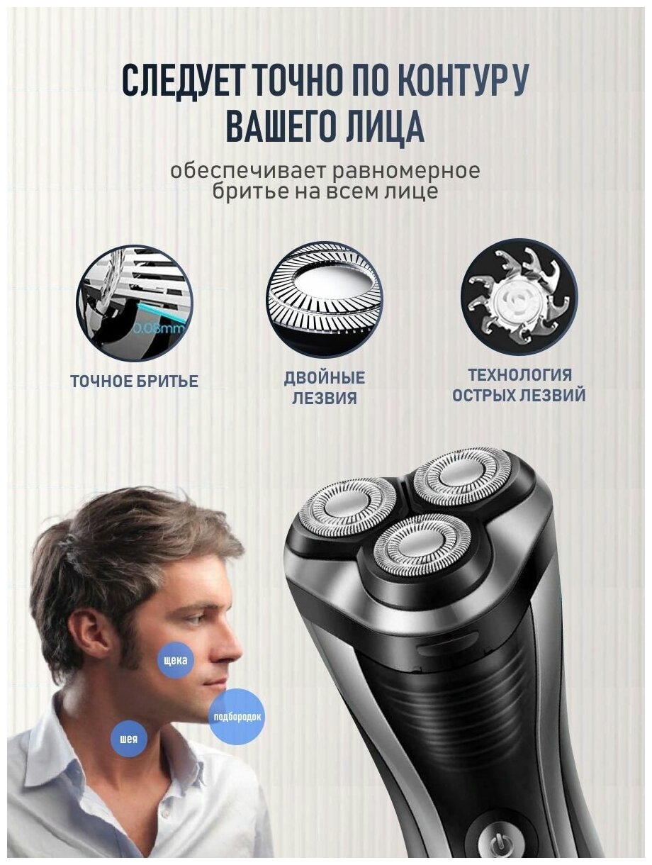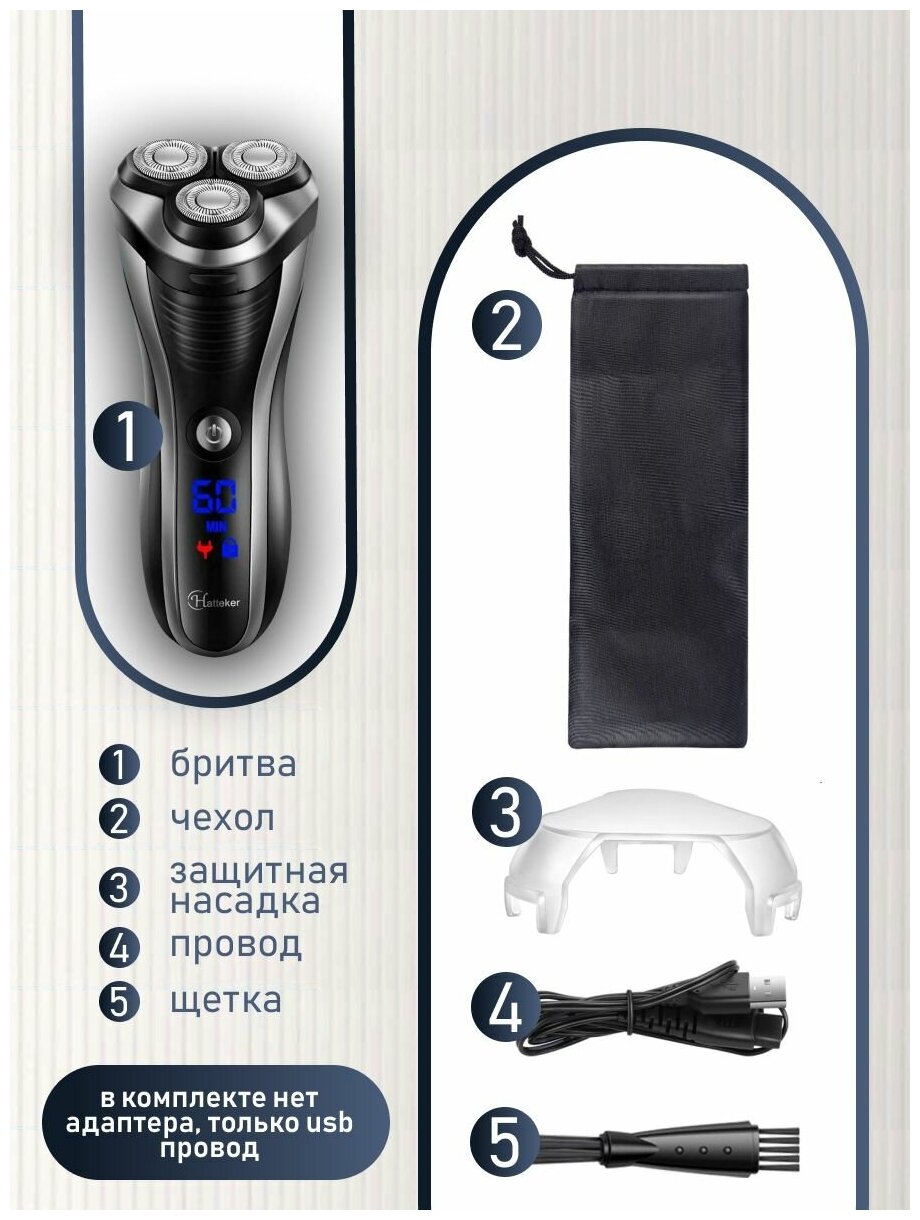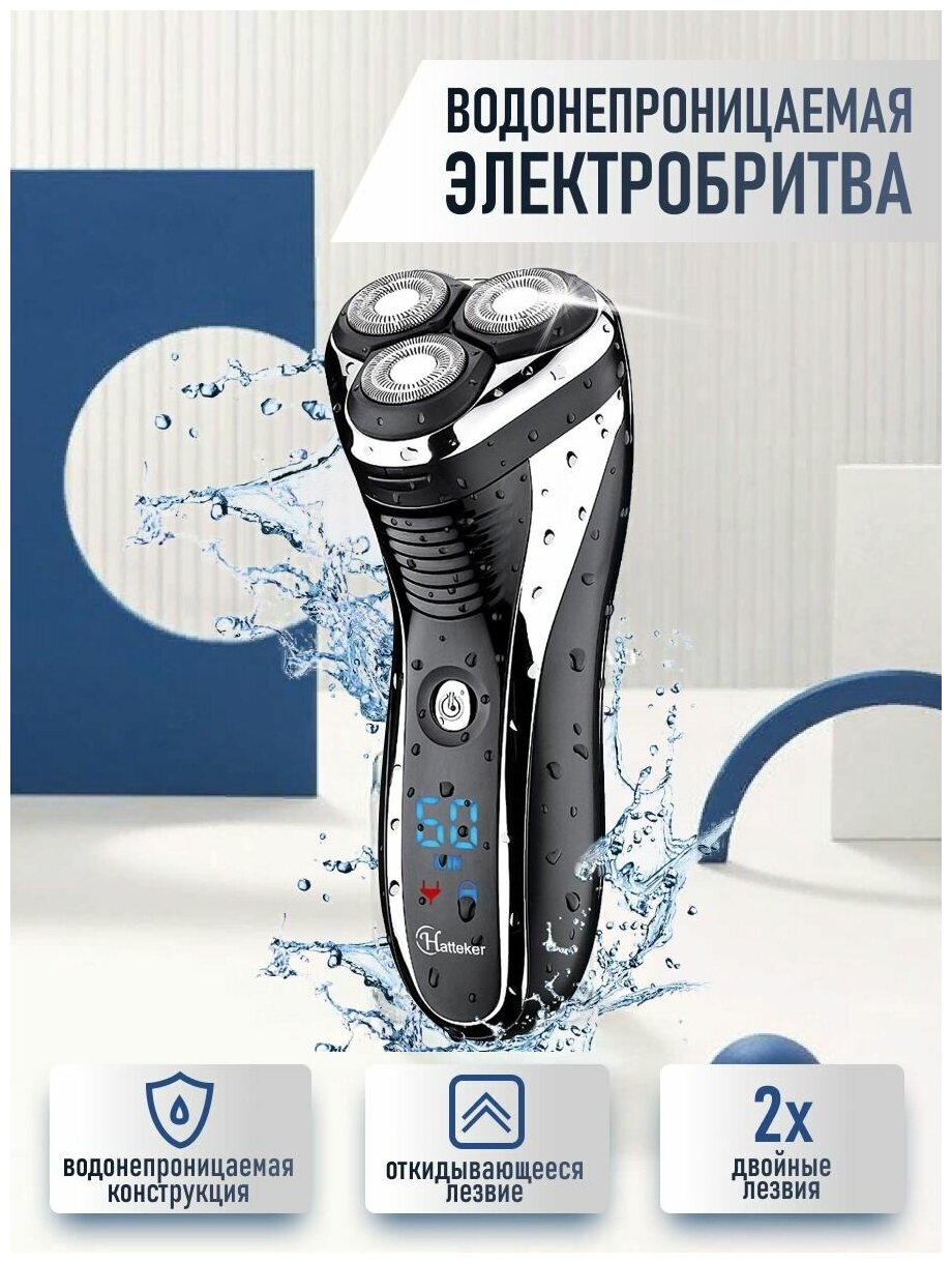 Электробритва водонепроницаемая GV-HOME Hatteket MS432с индикатором уровня заряда, триммер интересное: