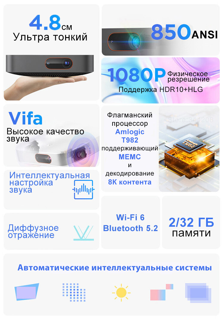Проектор Lenovo Xiaoxin 520, Белый (DLP, 1080p, 850 ANSI, Android, MEMC, HDR10+, Русский язык) интересное: