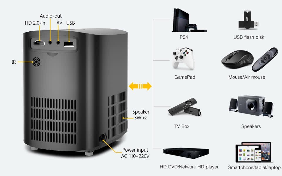 Портативный HD-проектор Vivicine 1280x720p