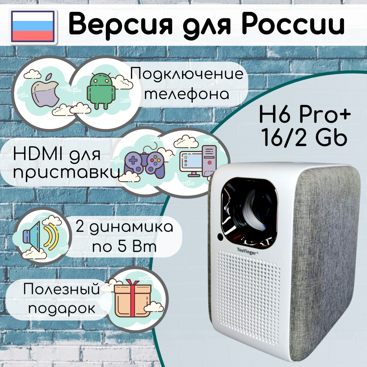 Проектор TouYinger H6 Pro+ 32Gb / 2 Gb (+ Бесплатные кинотеатры)