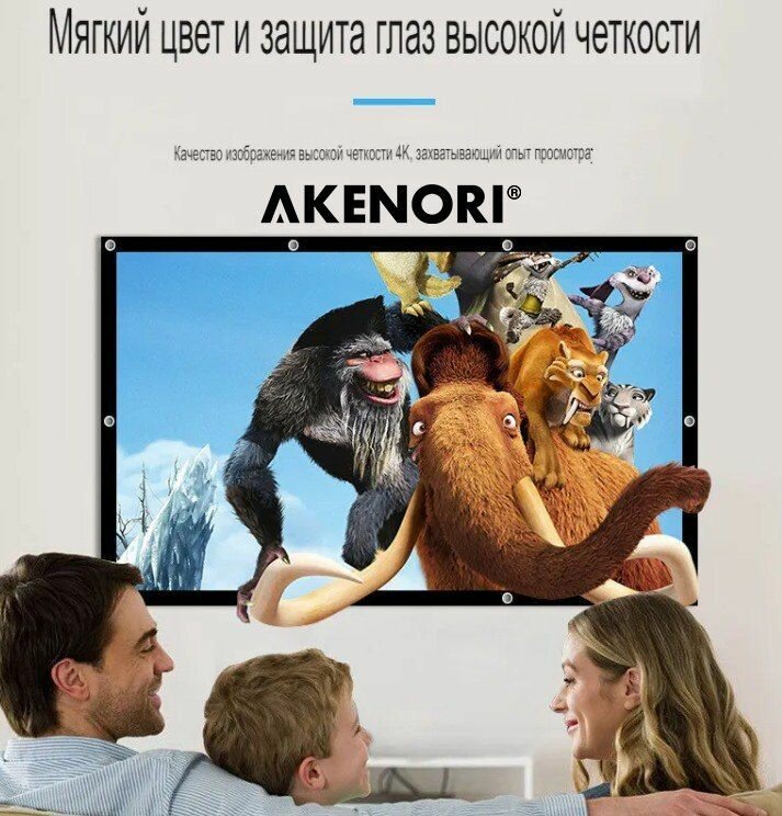 Экран для проектора светоотражающий серый Akenori 003D 84 дюйма 16:9 " липучки+пакет