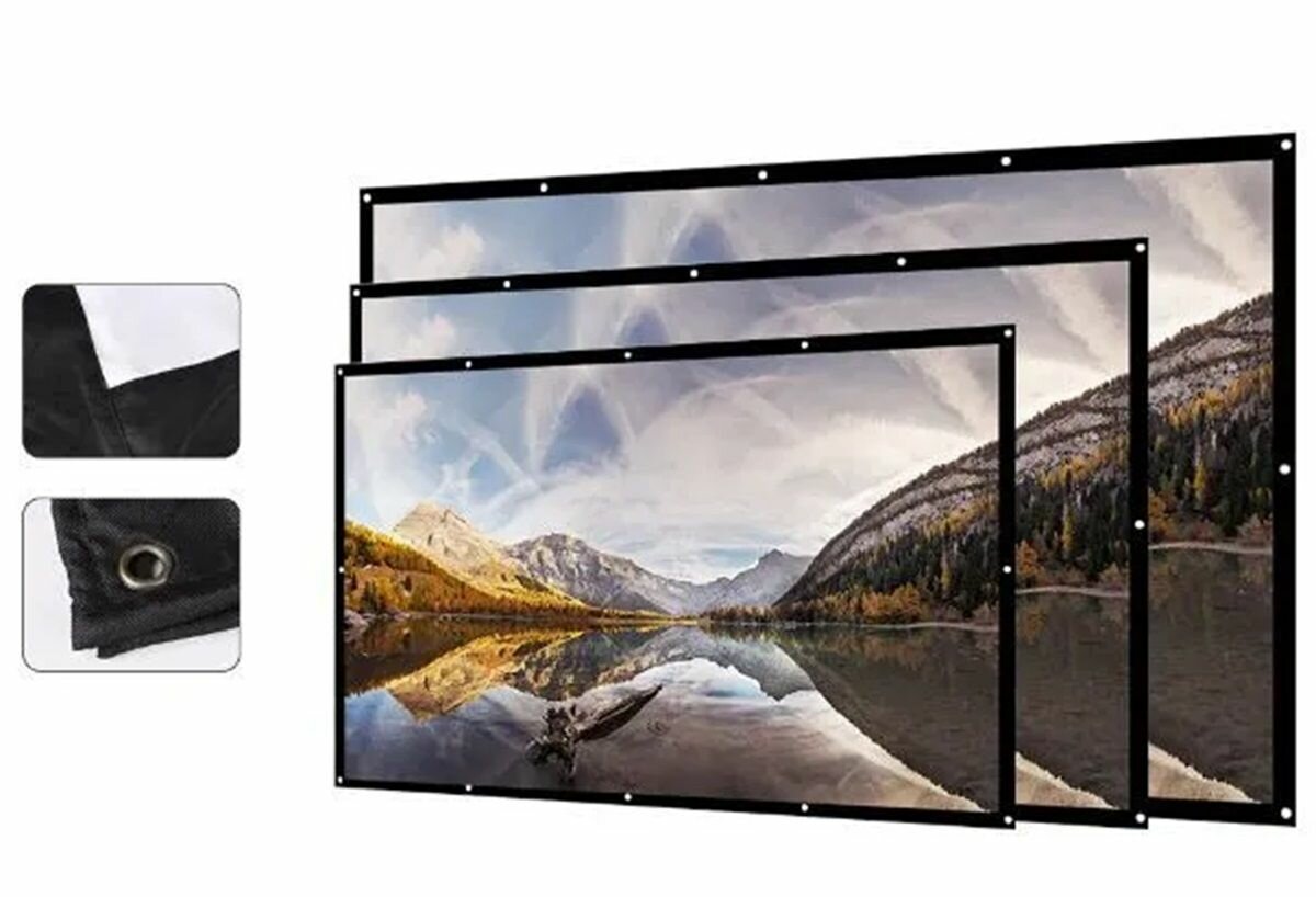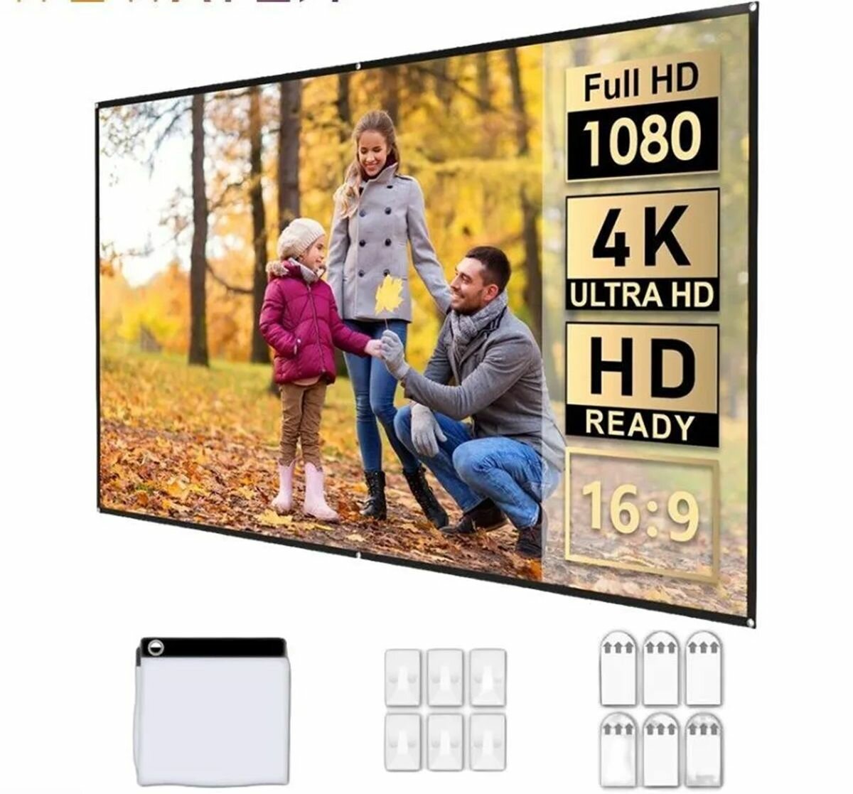 Экран для проектора Akenori 007 Полотно для проектора 100 дюймов, с кольцами и крюками Серый, полиэфирный 16:9 интересное: