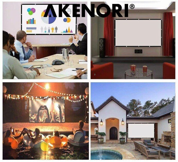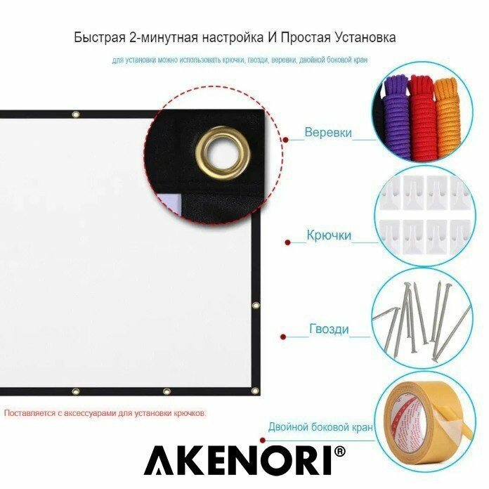 Экран для проектора 100 дюймов Akenori 005 Светоотражающий с крюками,Серый (Формат 16:9 и 16:10)