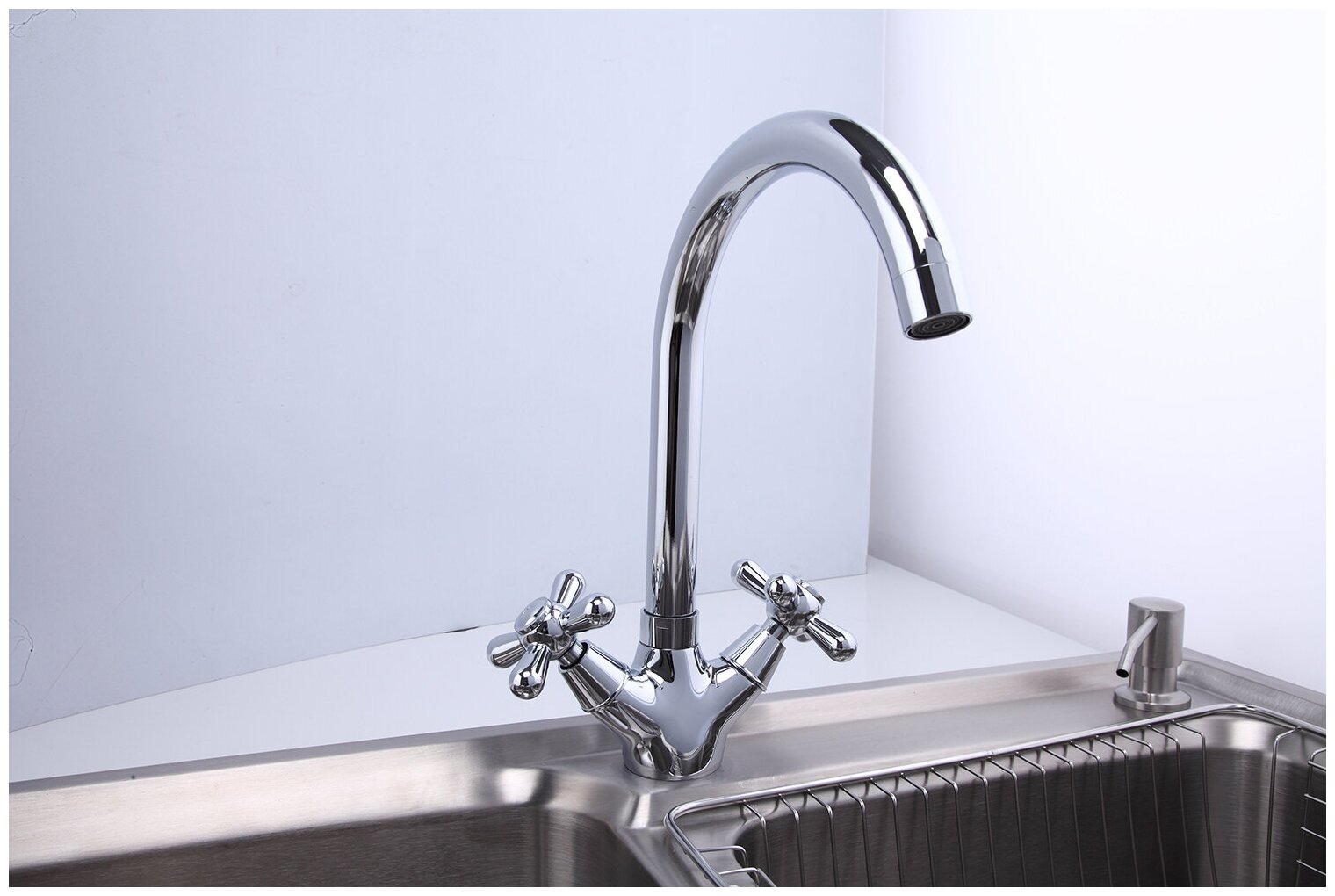 Смеситель для кухни Frap F4025, с гибким изливом, двухвентильный, хром