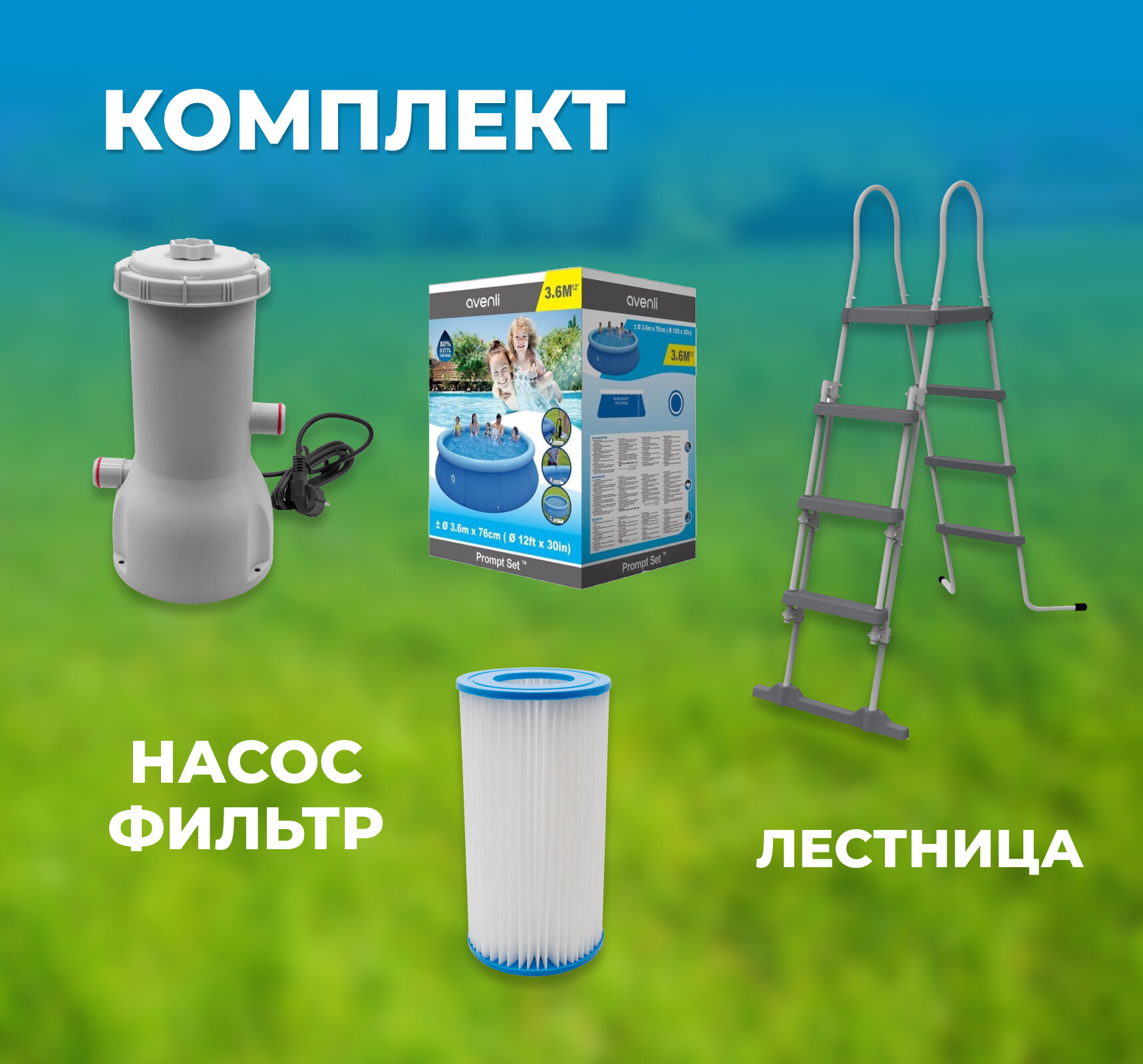 Каркасный бассейн круглый Avenli 360х76 см с фильтр насосом