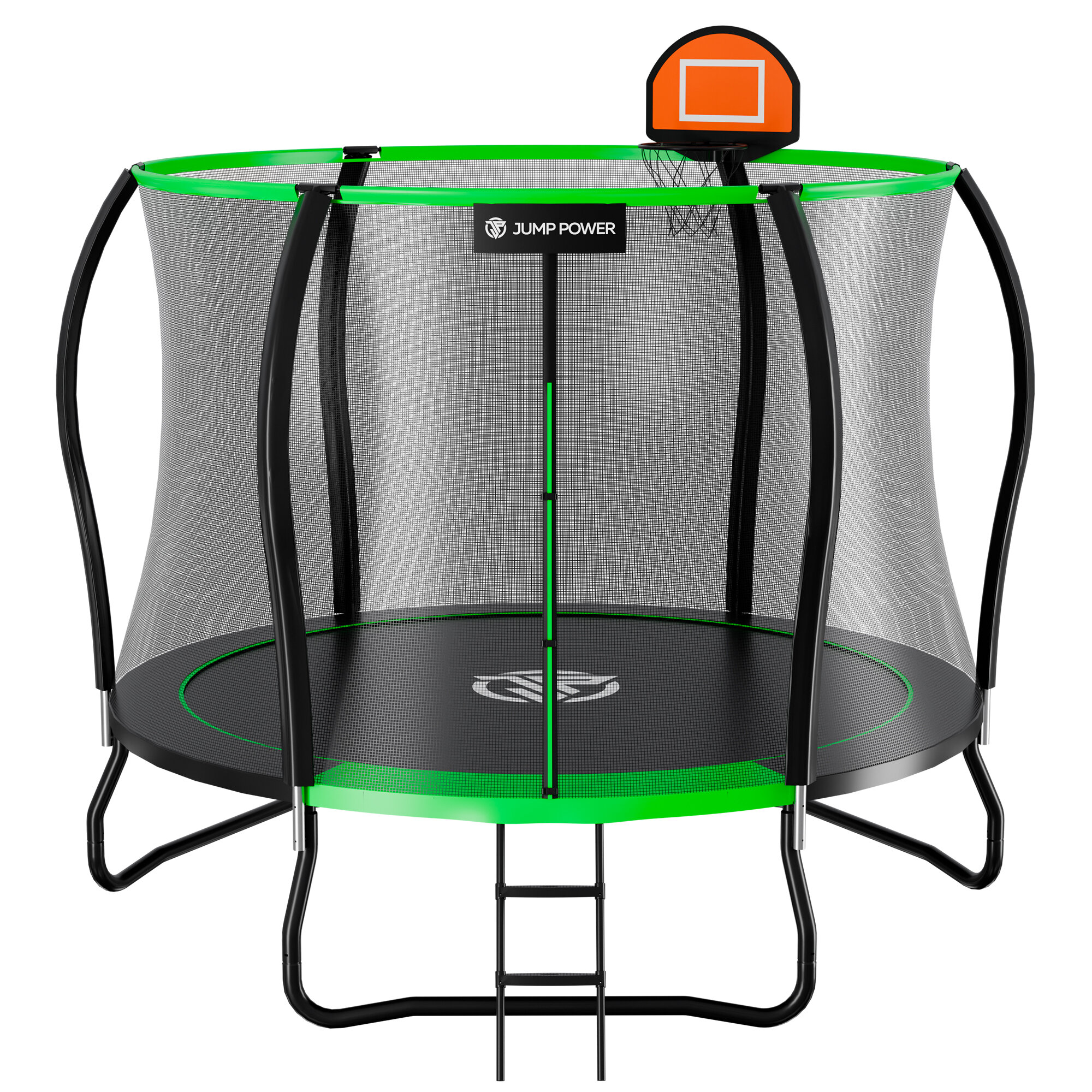Батут каркасный детский Jump Power 306 см зеленый с защитной сеткой для детей/ игровой комплекс/баскетбольное кольцо+мяч/ максимальная нагрузка 150кг