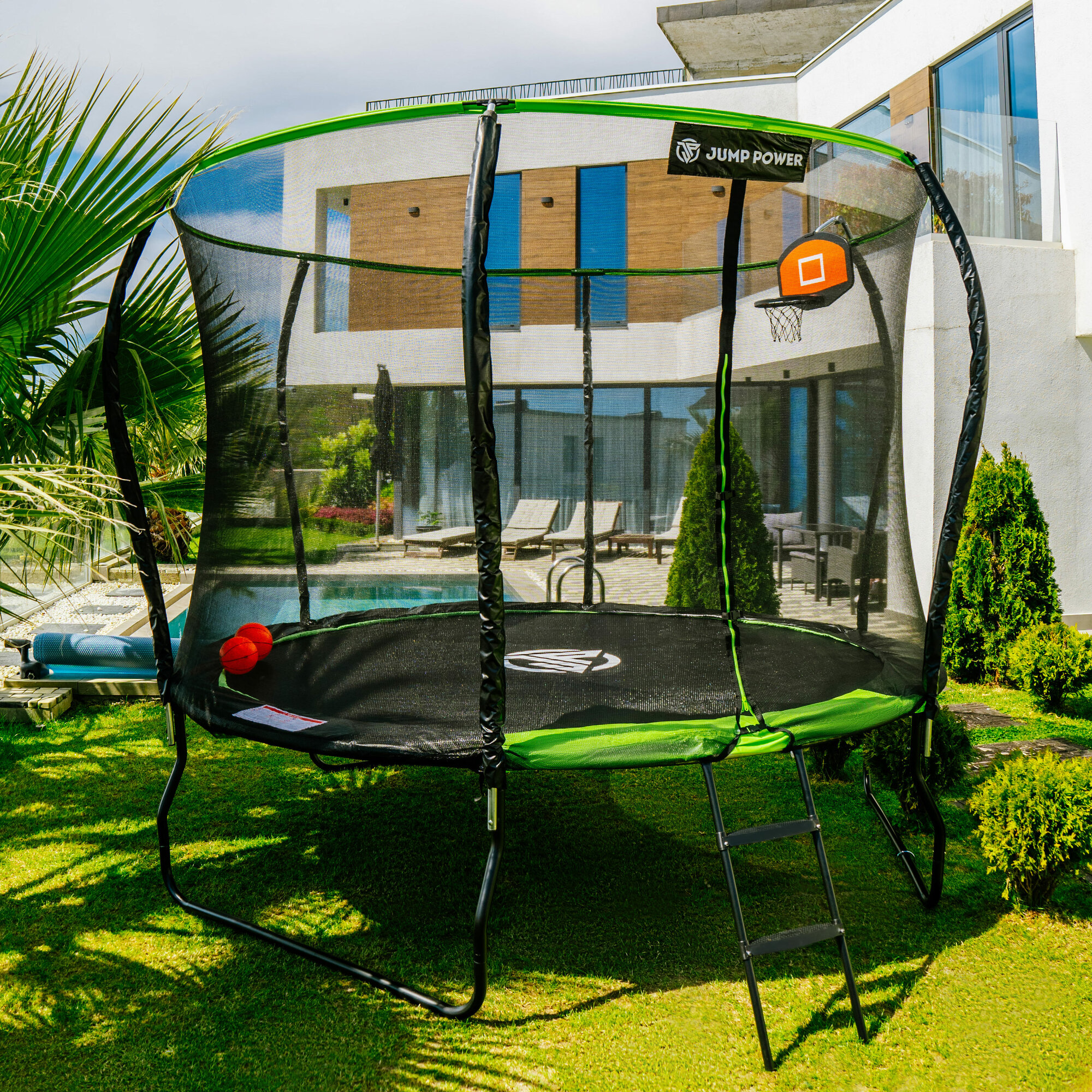 Купить Батут Jump Power Stable Point 10ft с баскет. кольцом, сеткой и лестницей для детей и взрослых