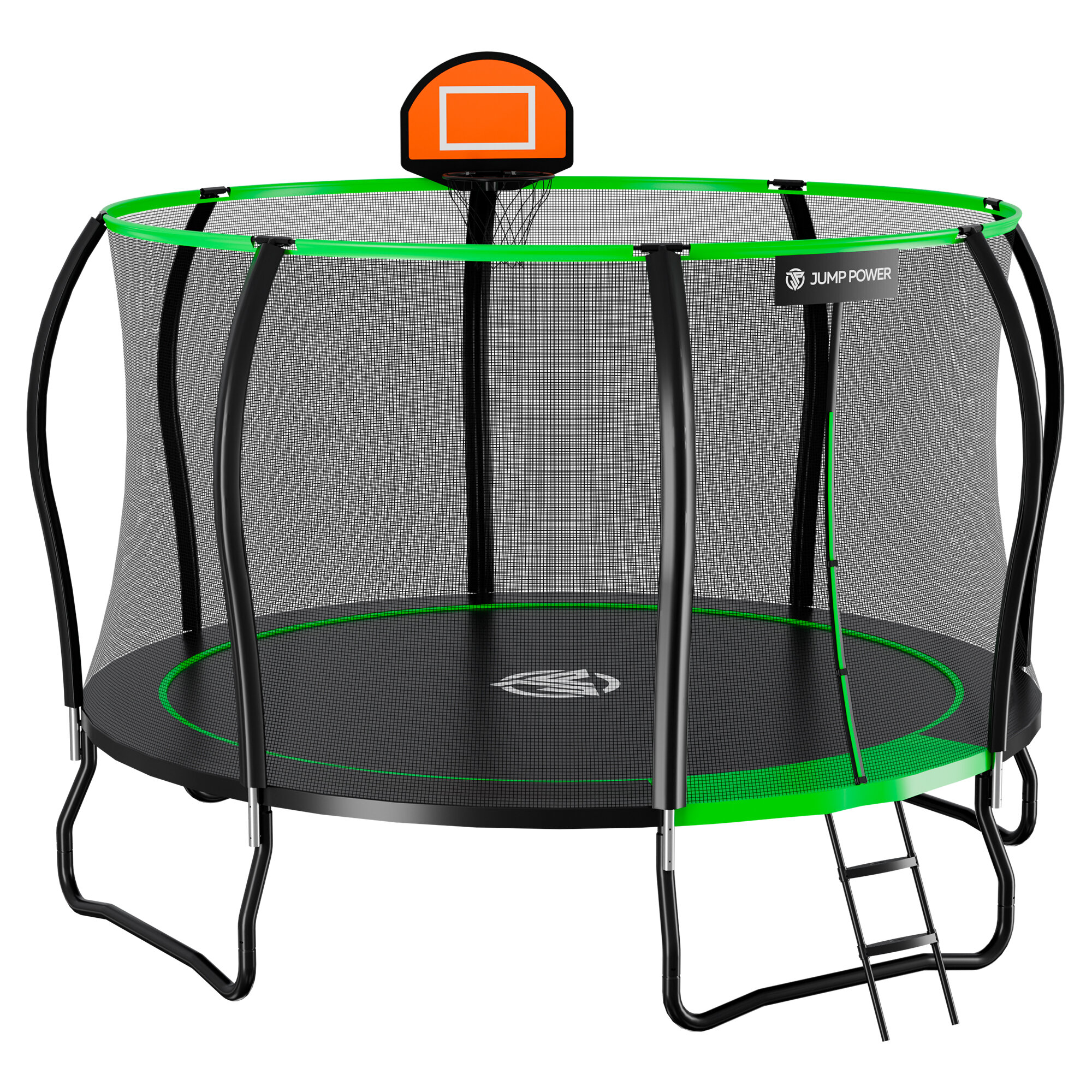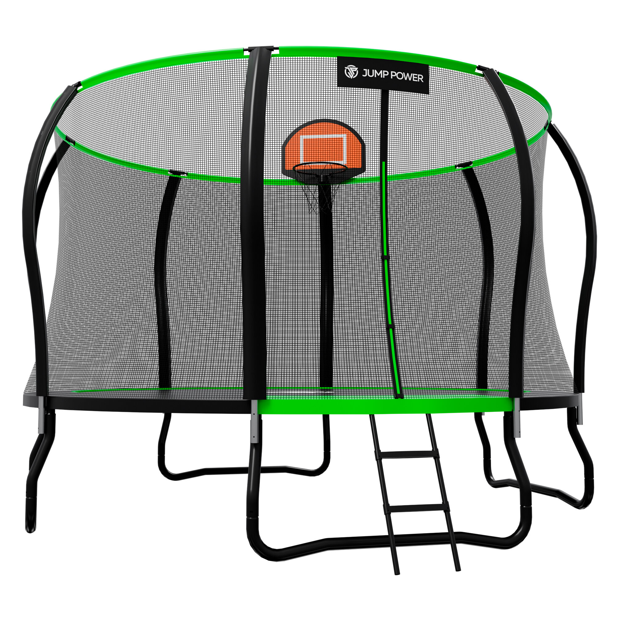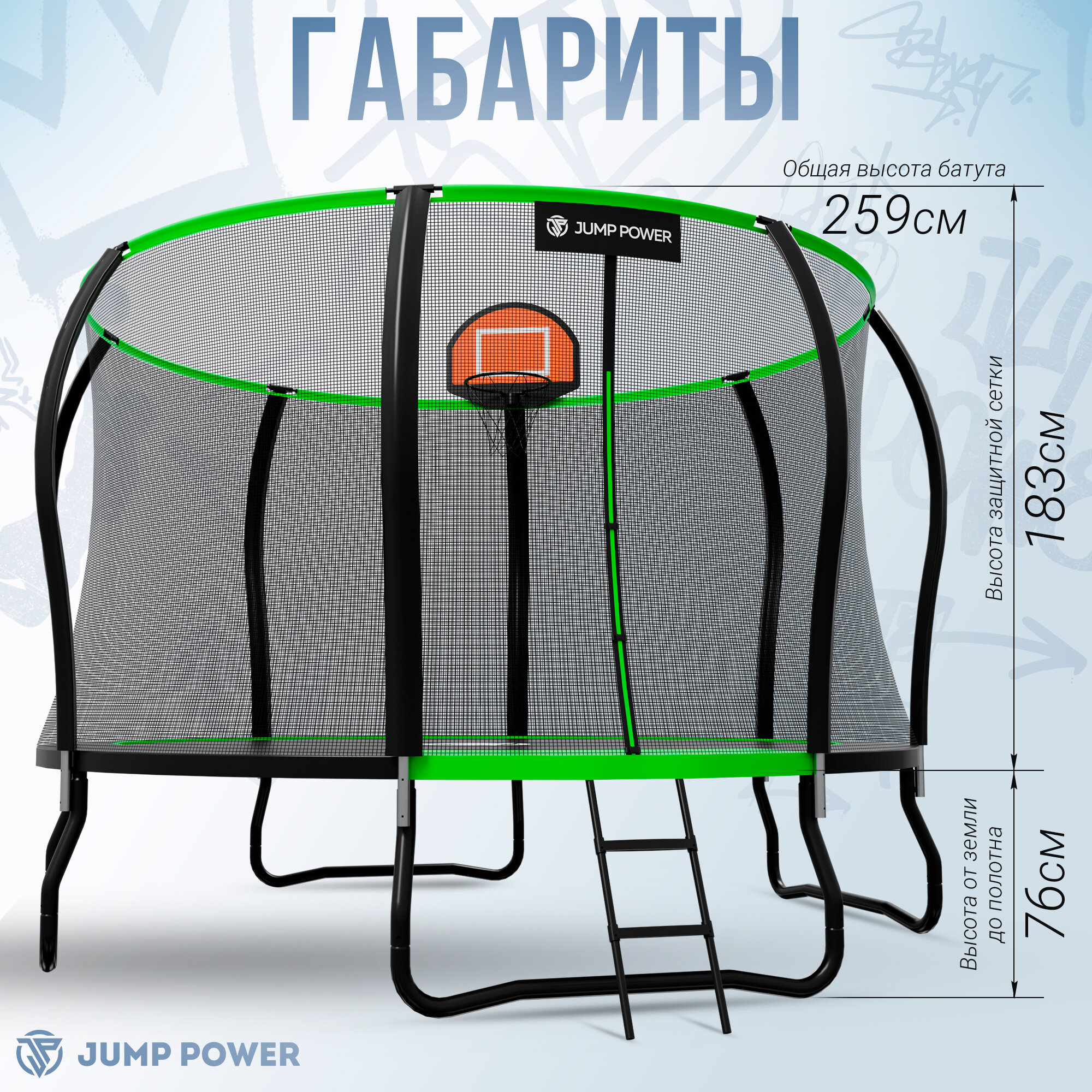 Батут каркасный детский Jump Power Inside 12FT 366 см с защитной сеткой для детей/для улицы и дачи/ баскетбольное кольцо+мяч /максимальная нагрузка 200кг/
