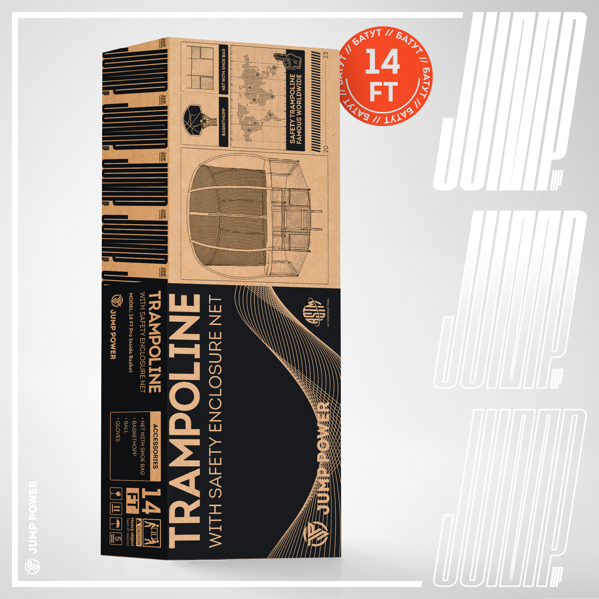 Батут Jump Power 14 ft Pro Inside Basket Orange интересное: