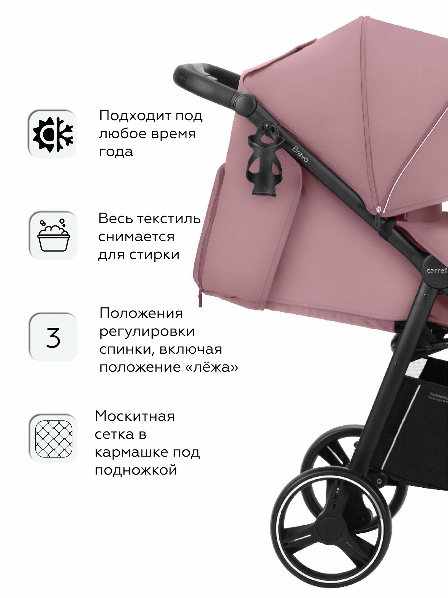 СохранитьКоляска прогулочная всесезонная CARRELLO Bravo CRL-8512, розовая интересное: