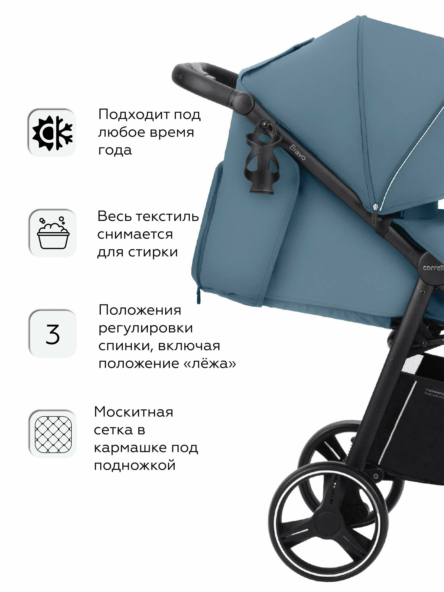 СохранитьКоляска прогулочная всесезонная CARRELLO Bravo CRL-8512, всесезонная, синяя интересное: