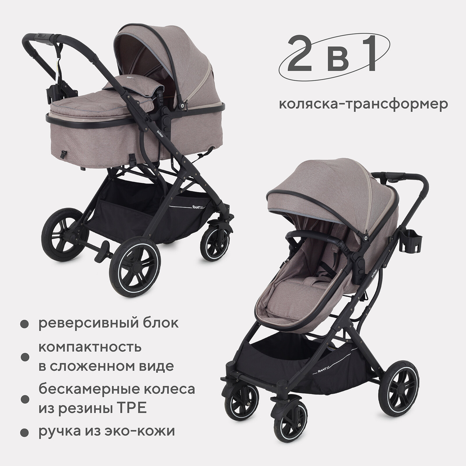 СохранитьКоляска-трансформер 2 в 1 с реверсивным блоком RANT basic PULSAR RA160 Beige интересное: