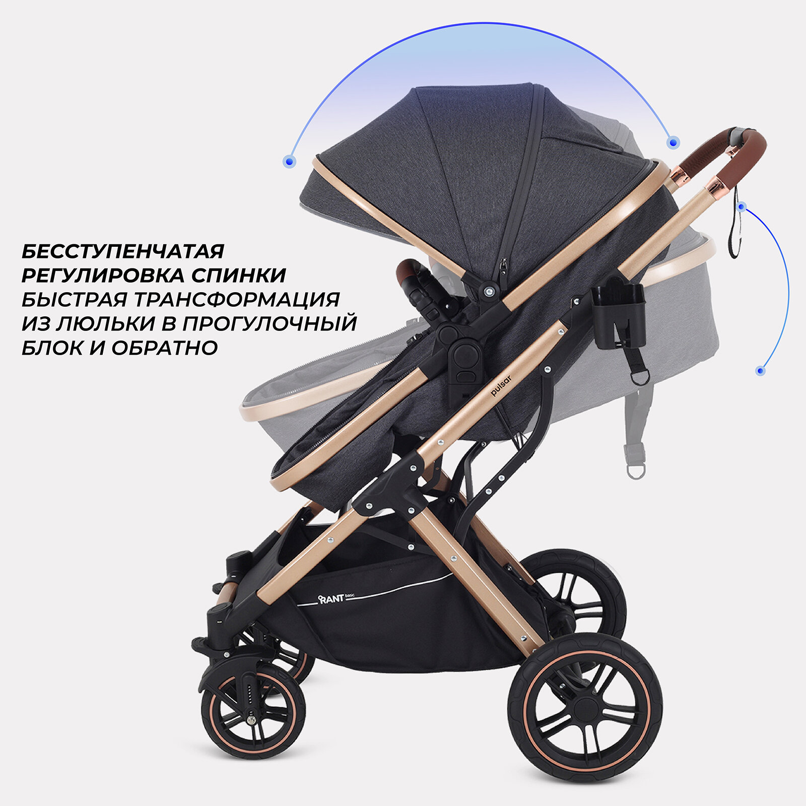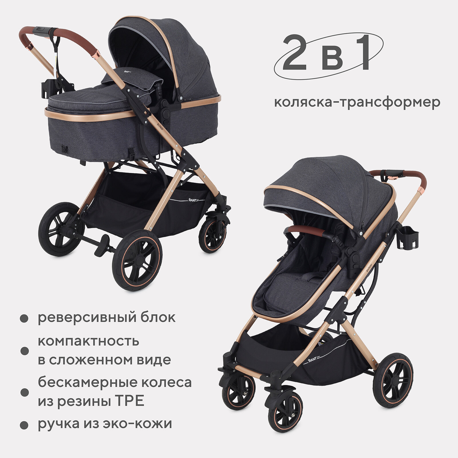 СохранитьКоляска-трансформер 2 в 1 с реверсивным блоком RANT basic PULSAR GOLD RA160 Grey интересное: