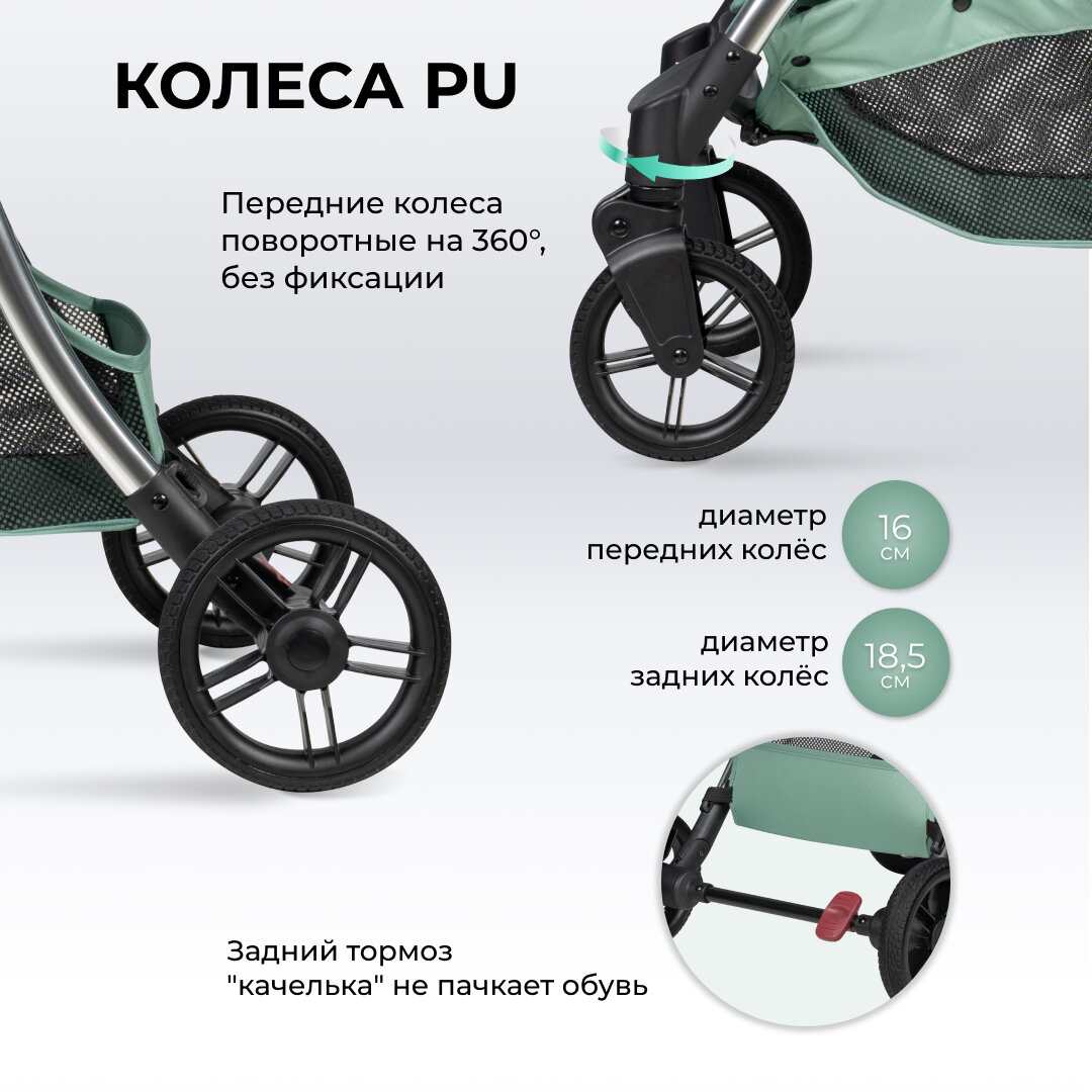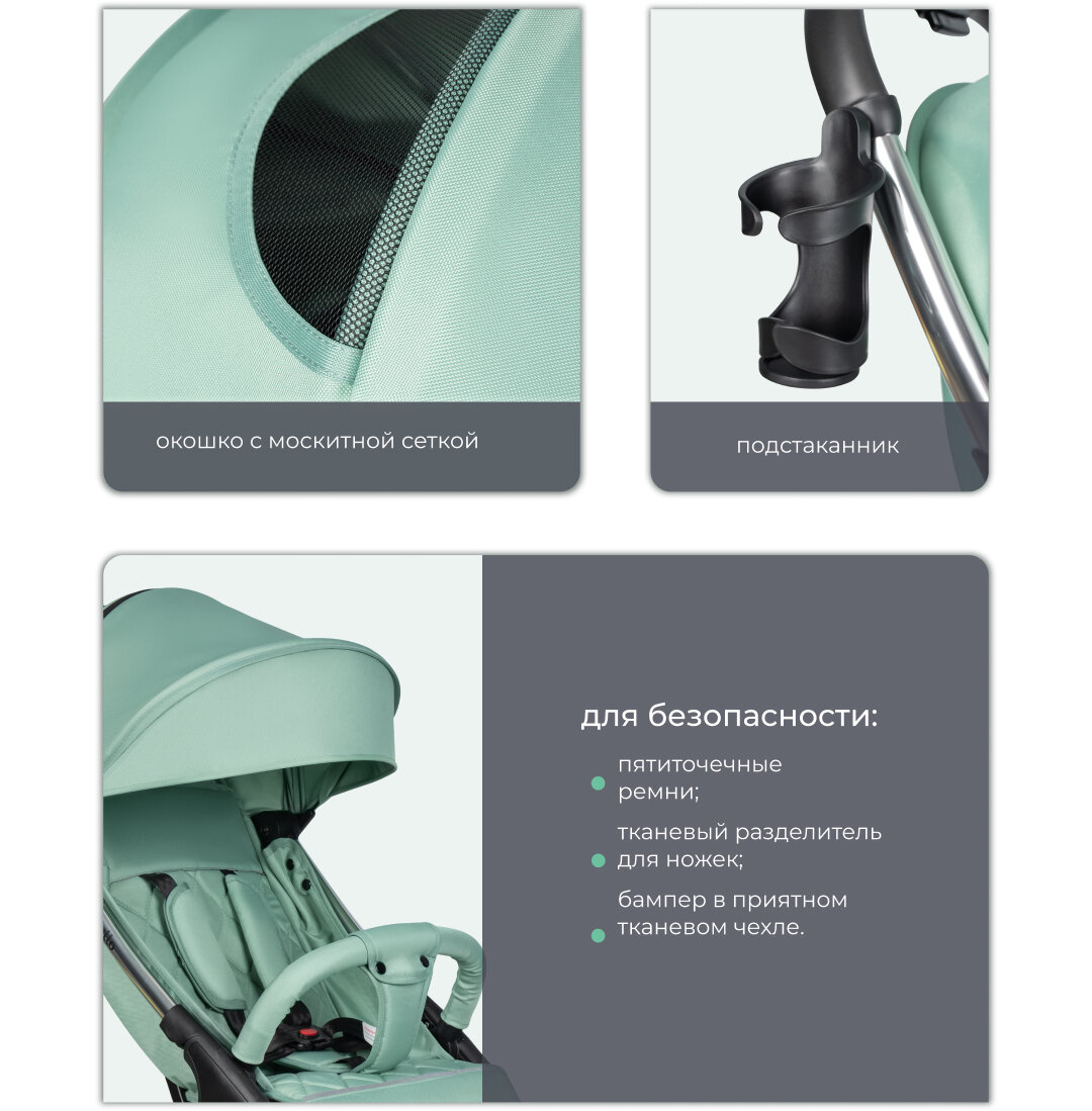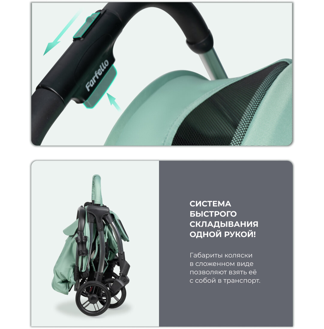 Коляска прогулочная Farfello Sunrise, мятный интересное: