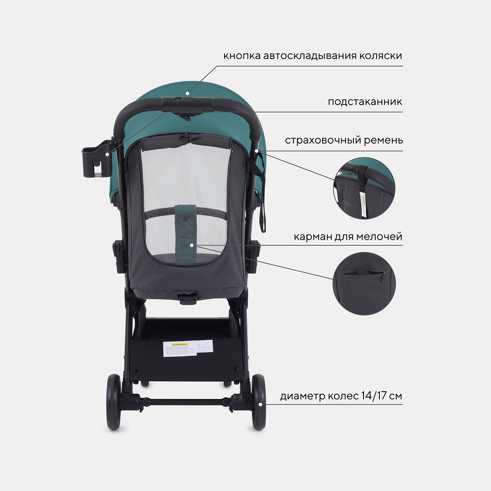 | Колеса | 4 шт., EVA, 14-17 см |