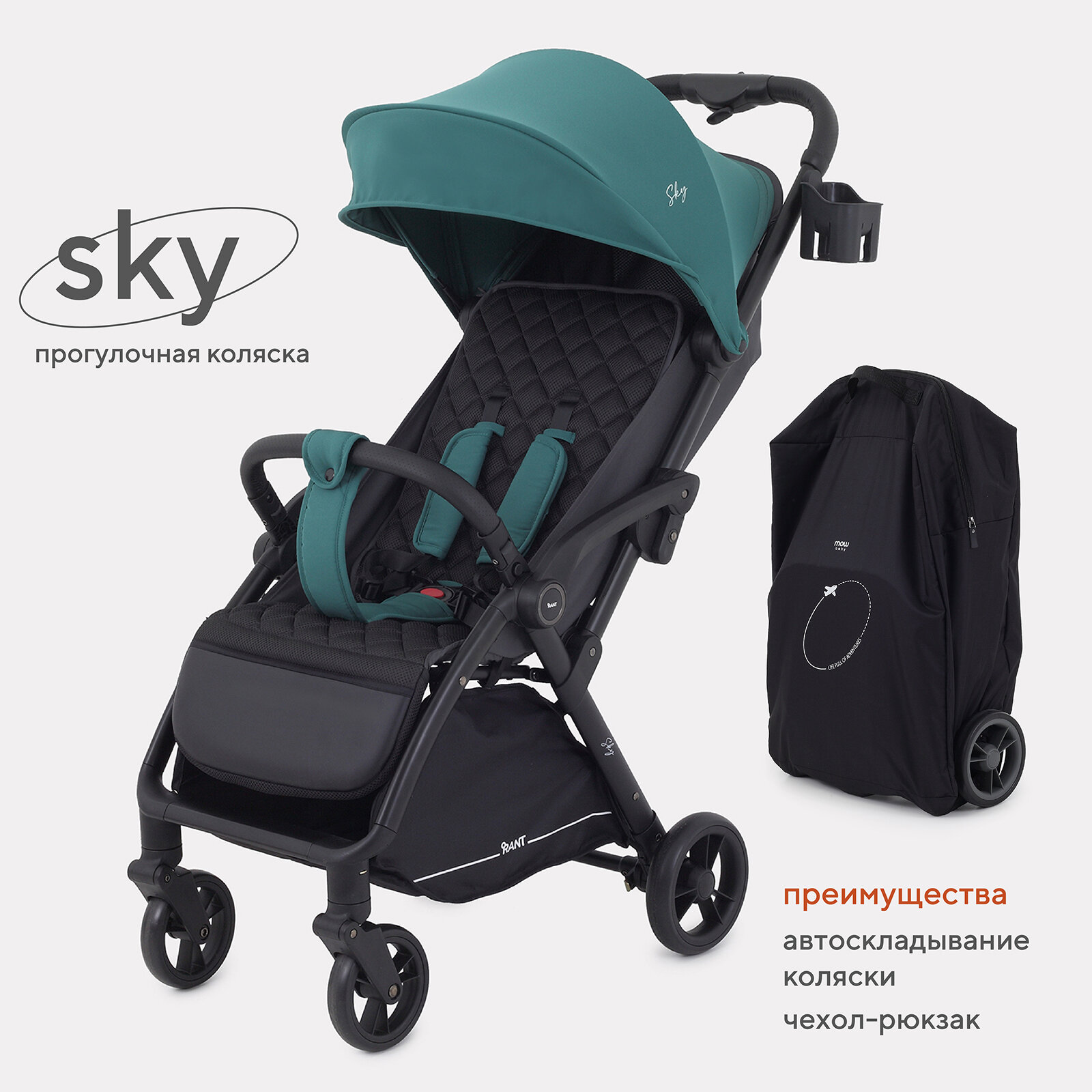 Коляска прогулочная детская с автосложением для путешествий RANT "SKY" RA400 Grass интересное:
