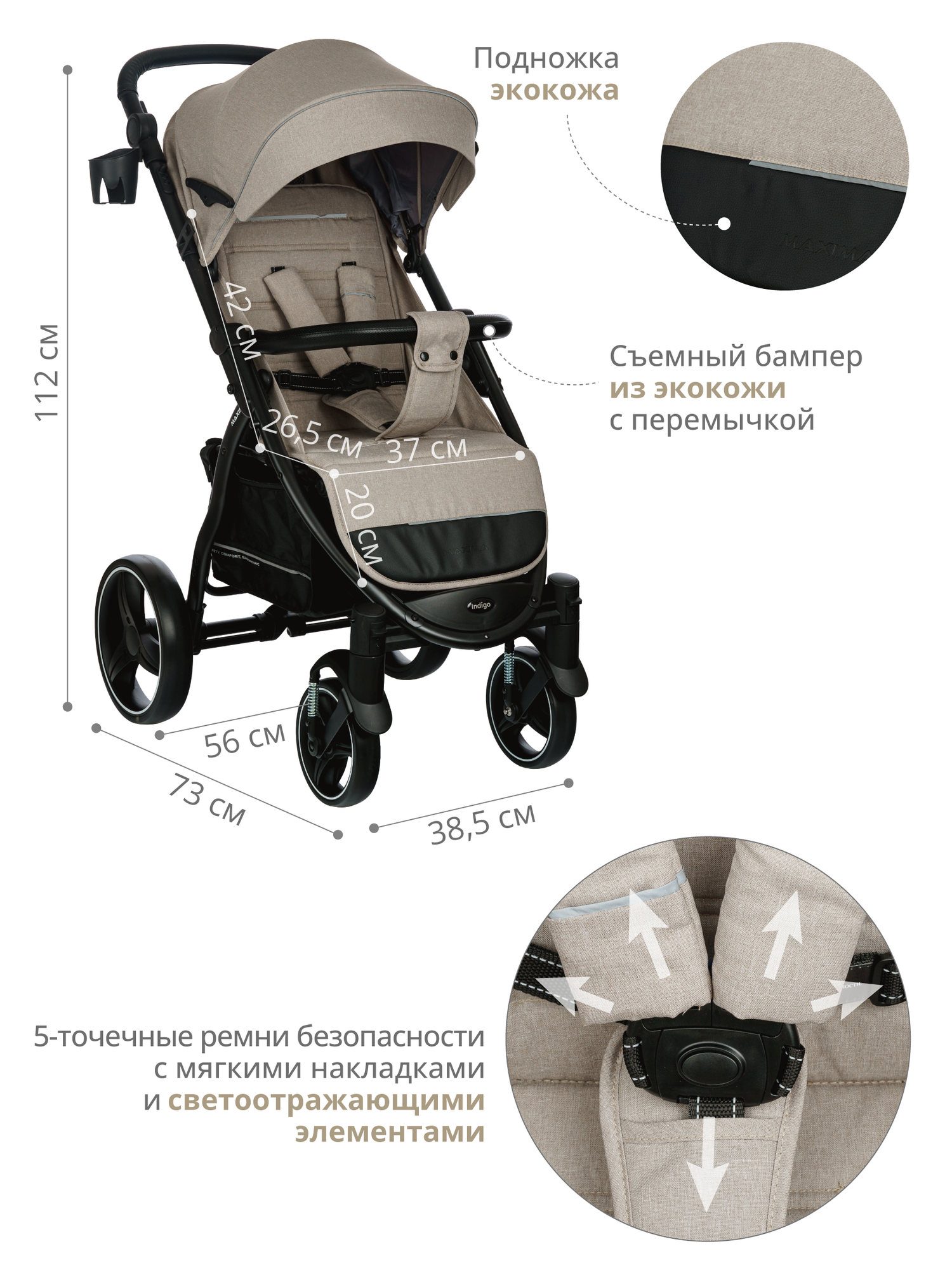 Коляска прогулочная детская MAXIMA (INDIGO), съемный бампер, цвет бежевый
