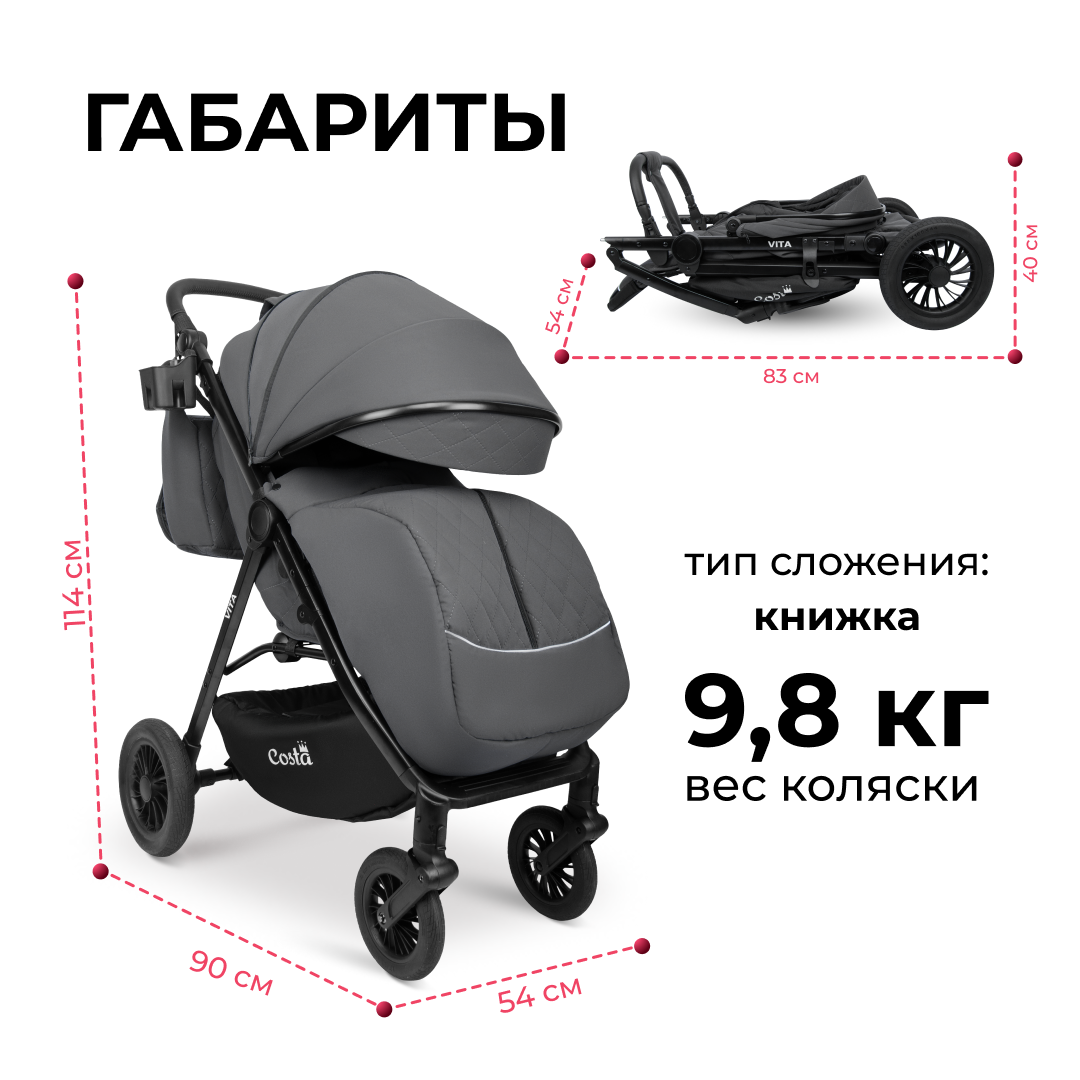 СохранитьКоляска прогулочная складная всесезонная Costa Vita, графит интересное: