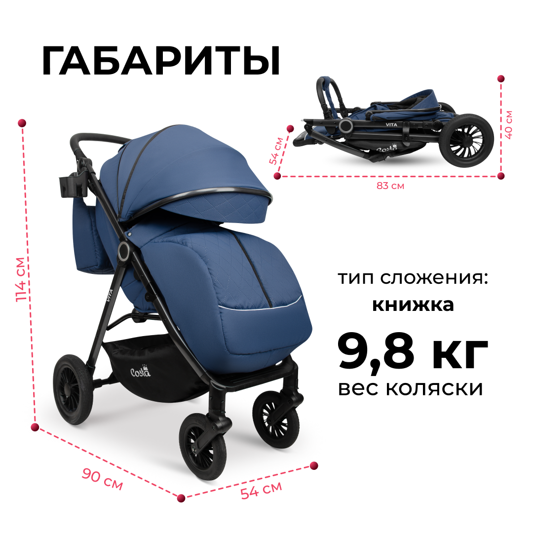 СохранитьКоляска прогулочная складная всесезонная Costa Vita, Сапфир интересное: