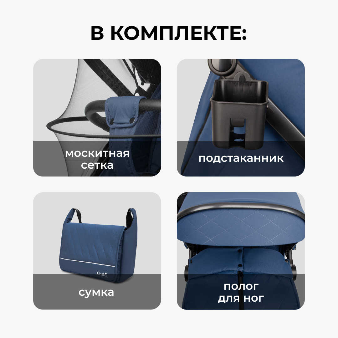 | Аксессуары в комплекте | антимоскитная сетка, бампер, капюшон, накидка на ноги, подстаканник, солнцезащитный козырек, сумка |