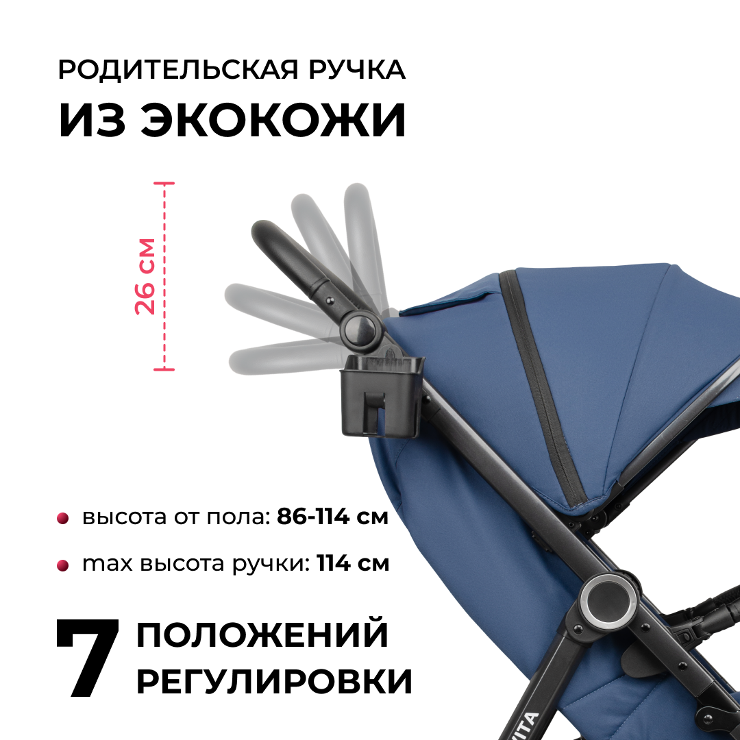 | Дополнительная информация | В расцветках капучино и чёрный колёса прорезиненные. Диаметр колес: передние — 18 см; задние— 25 см. В расцветках тёмно-синий и серый колёса цельнорезиновые. Диаметр колёс: передние — 20см; задние— 29 см. |
