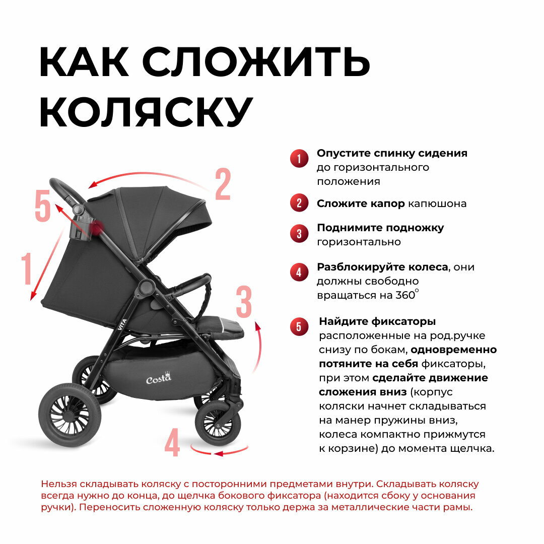 Ниже Вы можете прочитать отзывы на Коляска прогулочная складная всесезонная Costa Vita, Серый, ознакомится с подробными характеристиками, посмотреть интересные обзоры и фотографии на Коляска прогулочная складная всесезонная Costa Vita, Серый.