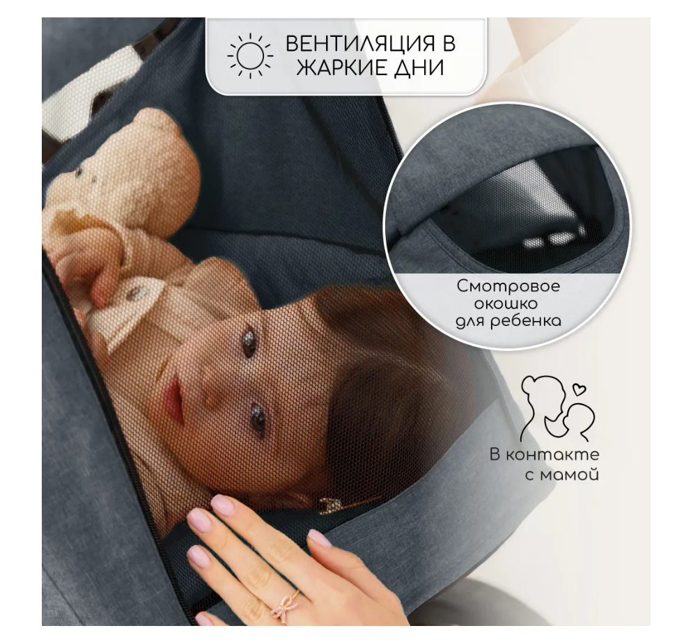 | Особенности | горизонтальное положение спинки, ремни безопасности, смотровое окно |