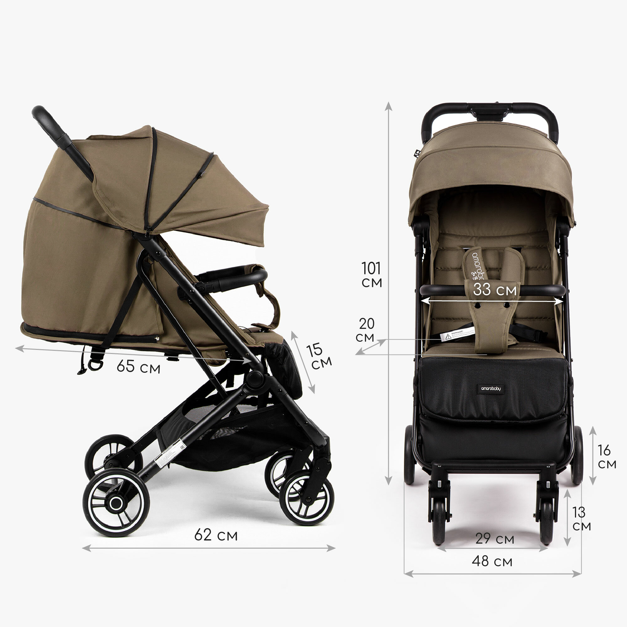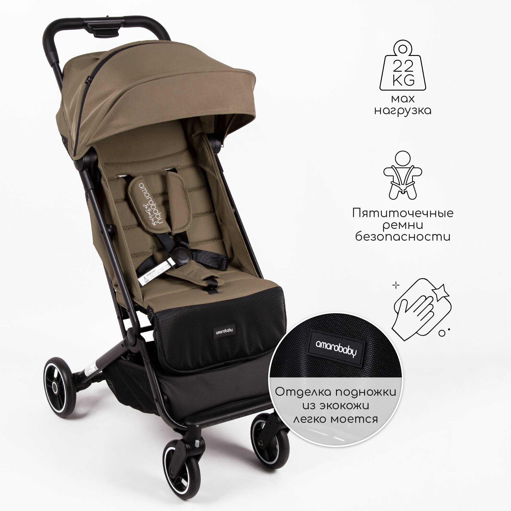 Коляска прогулочная Amarobaby Route, Хаки