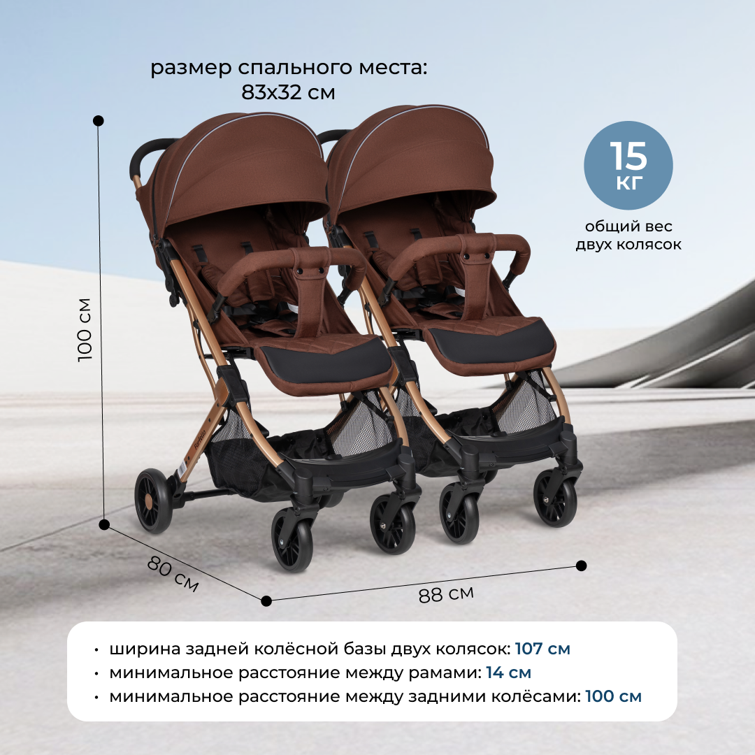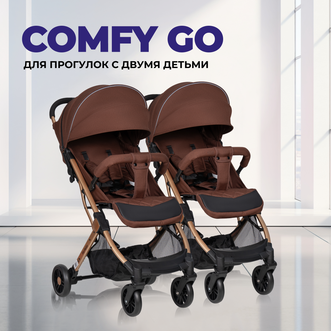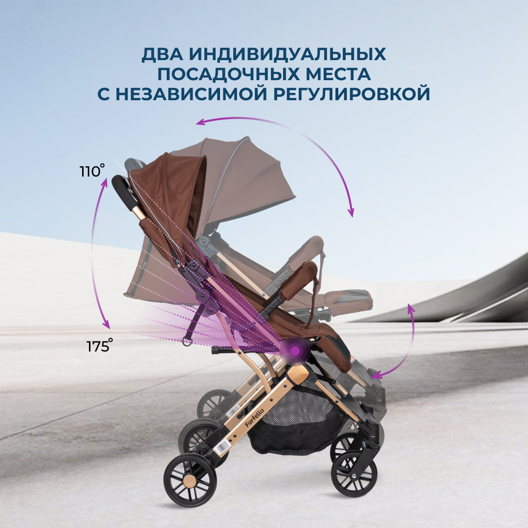 Коляска прогулочная для двойни Farfello Comfy Go, шоколадный интересное: