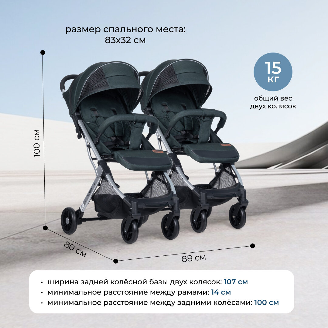 Коляска прогулочная для двойни Farfello Comfy Go, зеленый интересное: