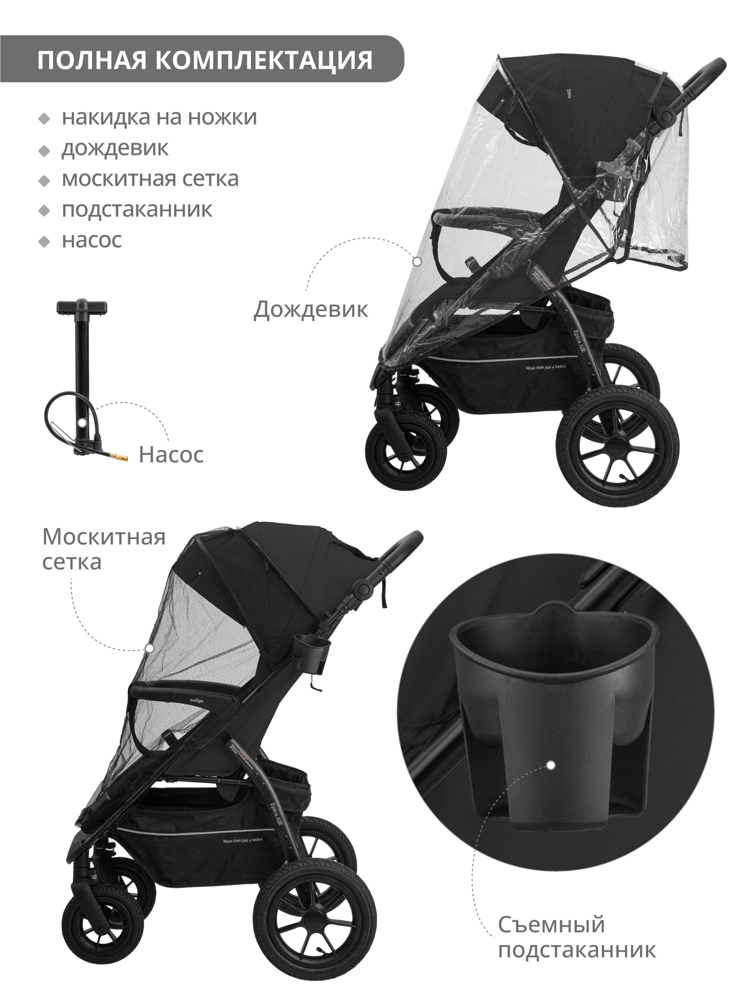 | Комплектация | дождевик; москитная сетка; насос для колес; подстаканник; накидка на ножки |