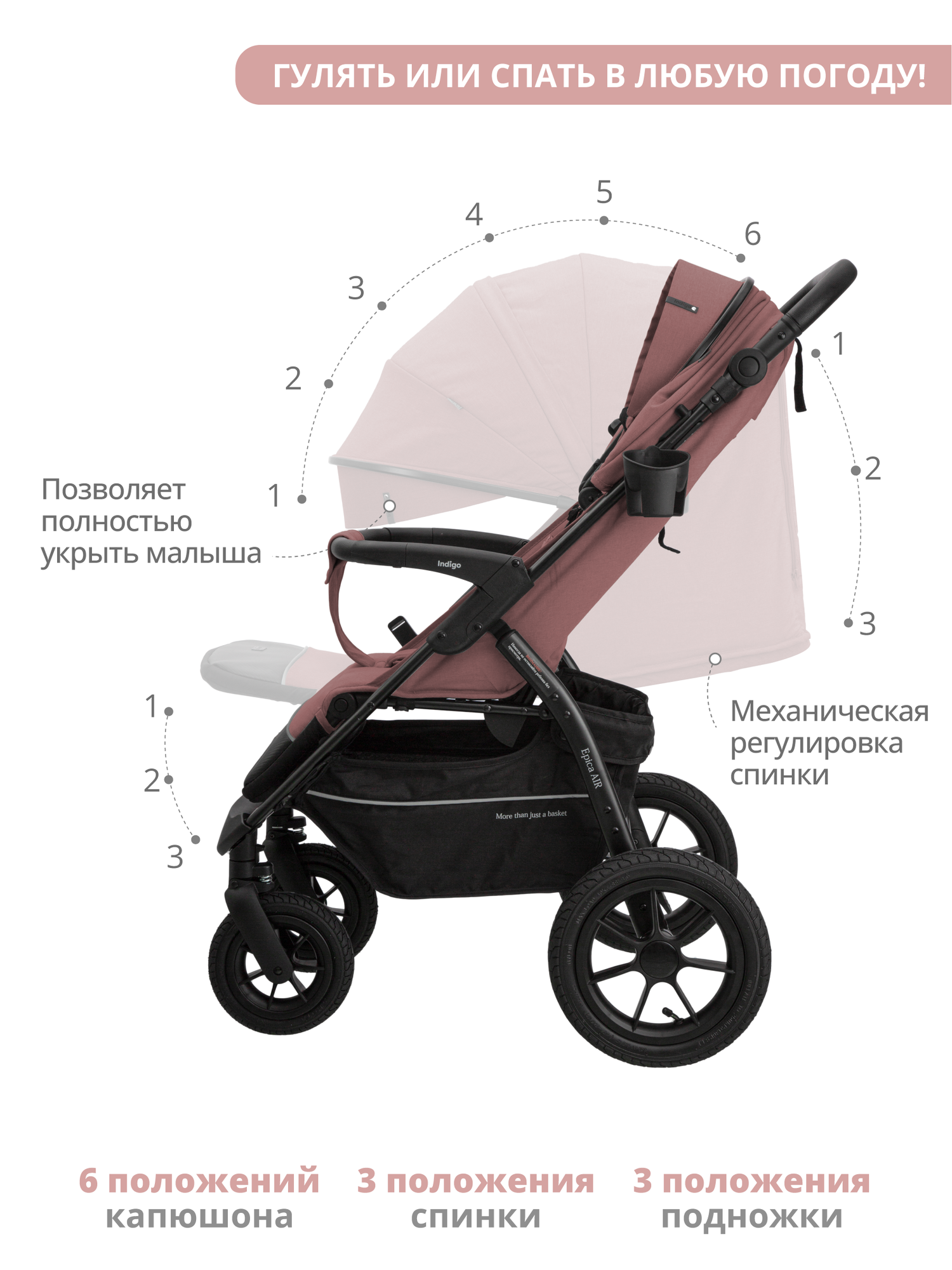 Прогулочная коляска Indigo Epica XL Air, розовый интересное: