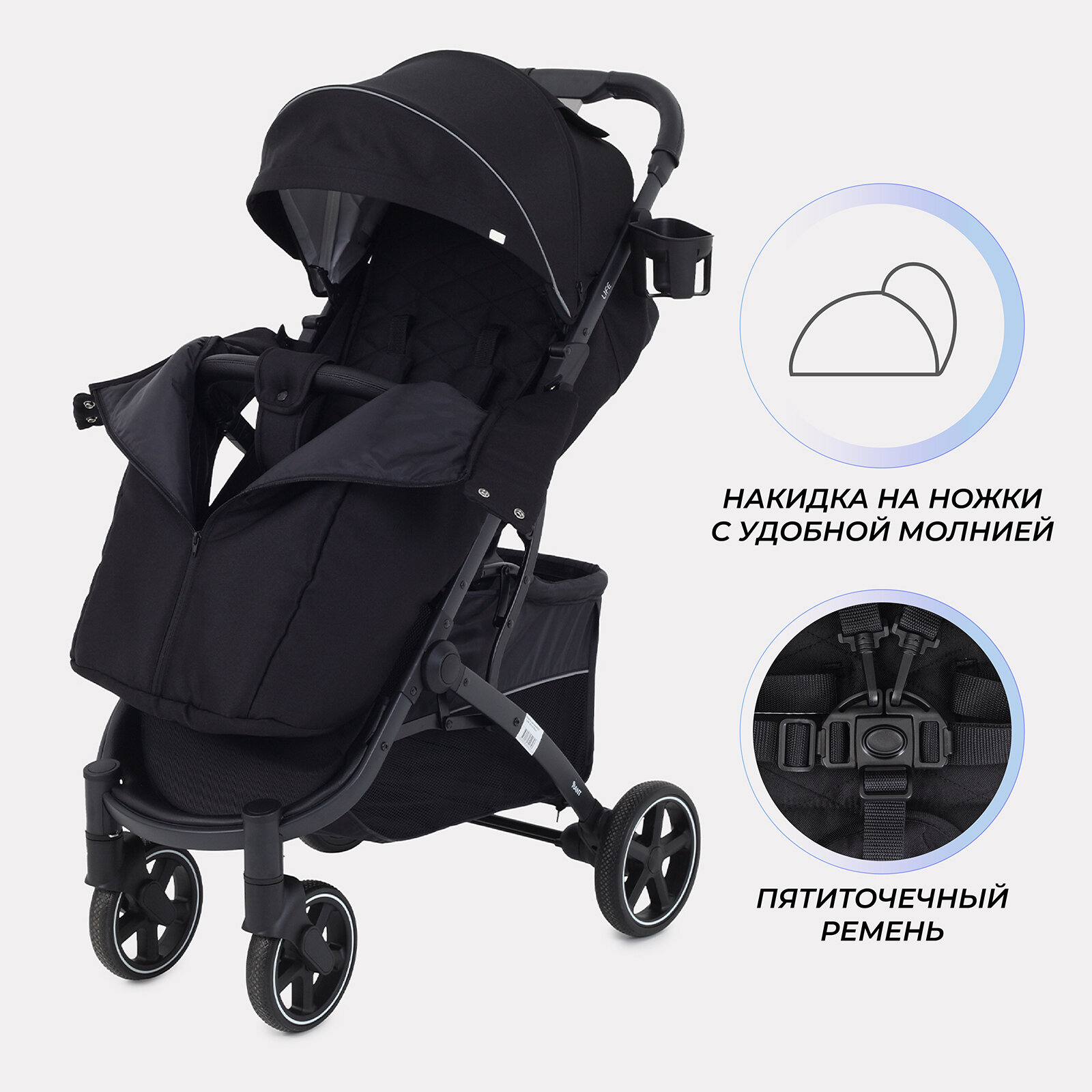 Коляска детская прогулочная всесезонная RANT "LIFE" RA104 Black интересное: