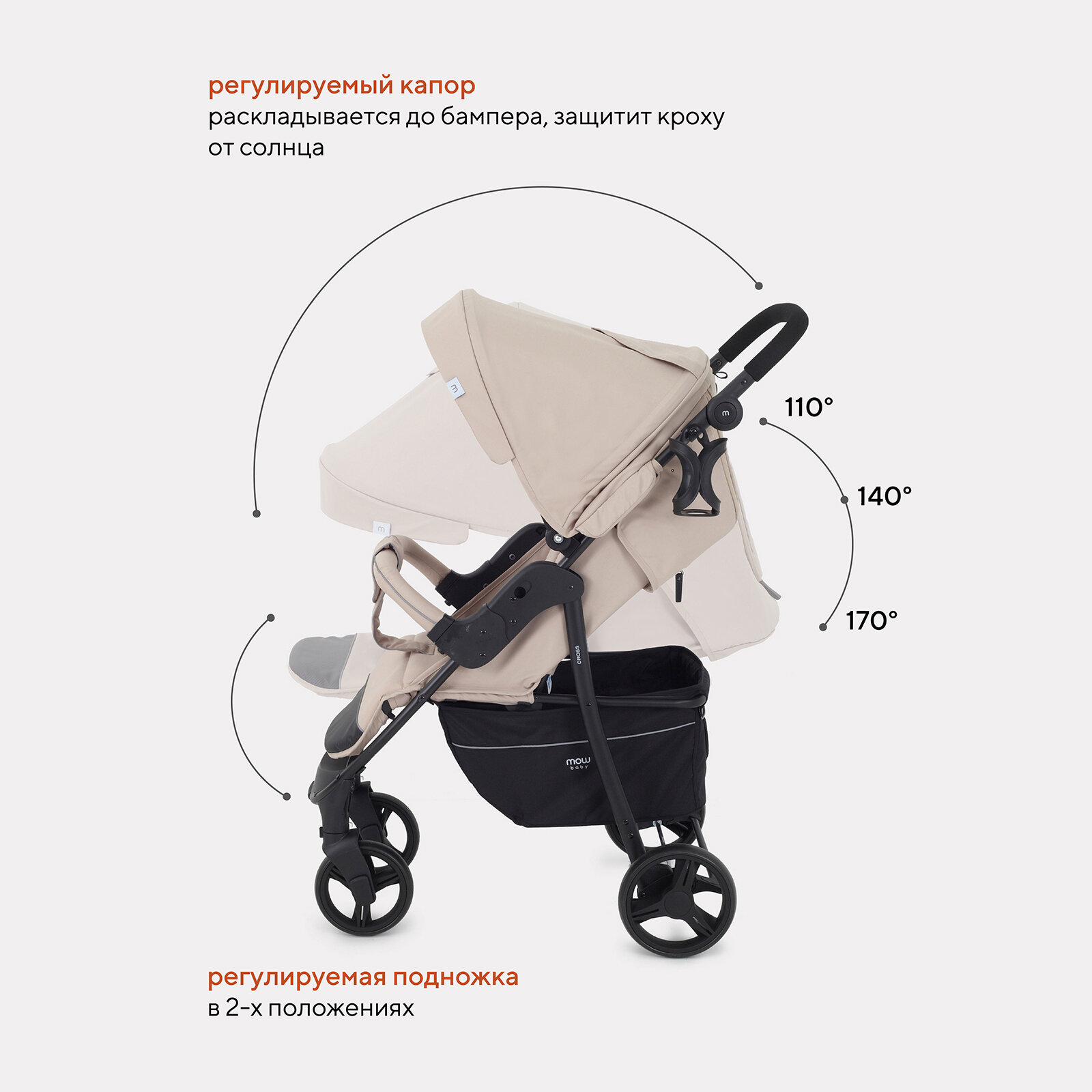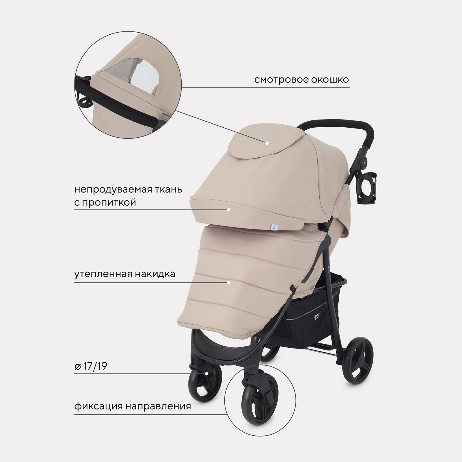 Коляска прогулочная всесезонная MOWBaby "CROSS" RA080 Beige 2024 интересное:
