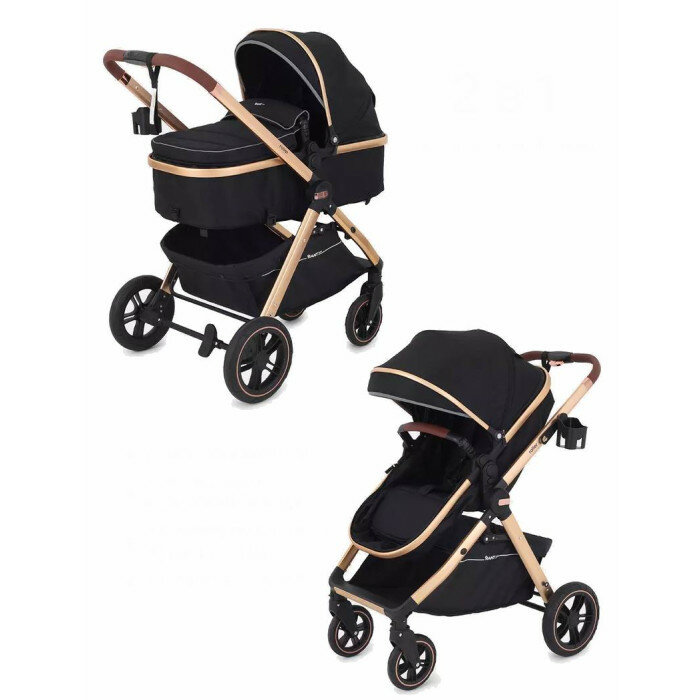 Коляска-трансформер Rant basic Roller Gold с перекидной ручкой детская всесезонная RA161 Black 2024