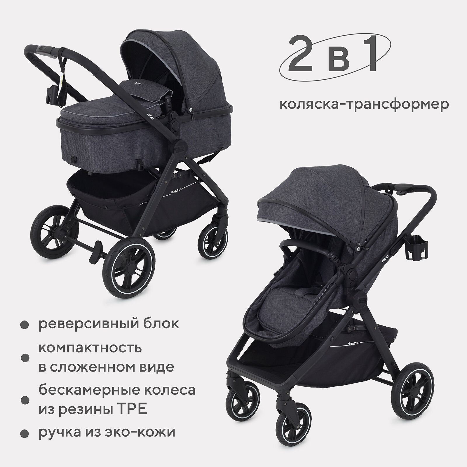 Коляска-трансформер детская всесезонная RANT basic ROLLER RA161 Grey интересное: