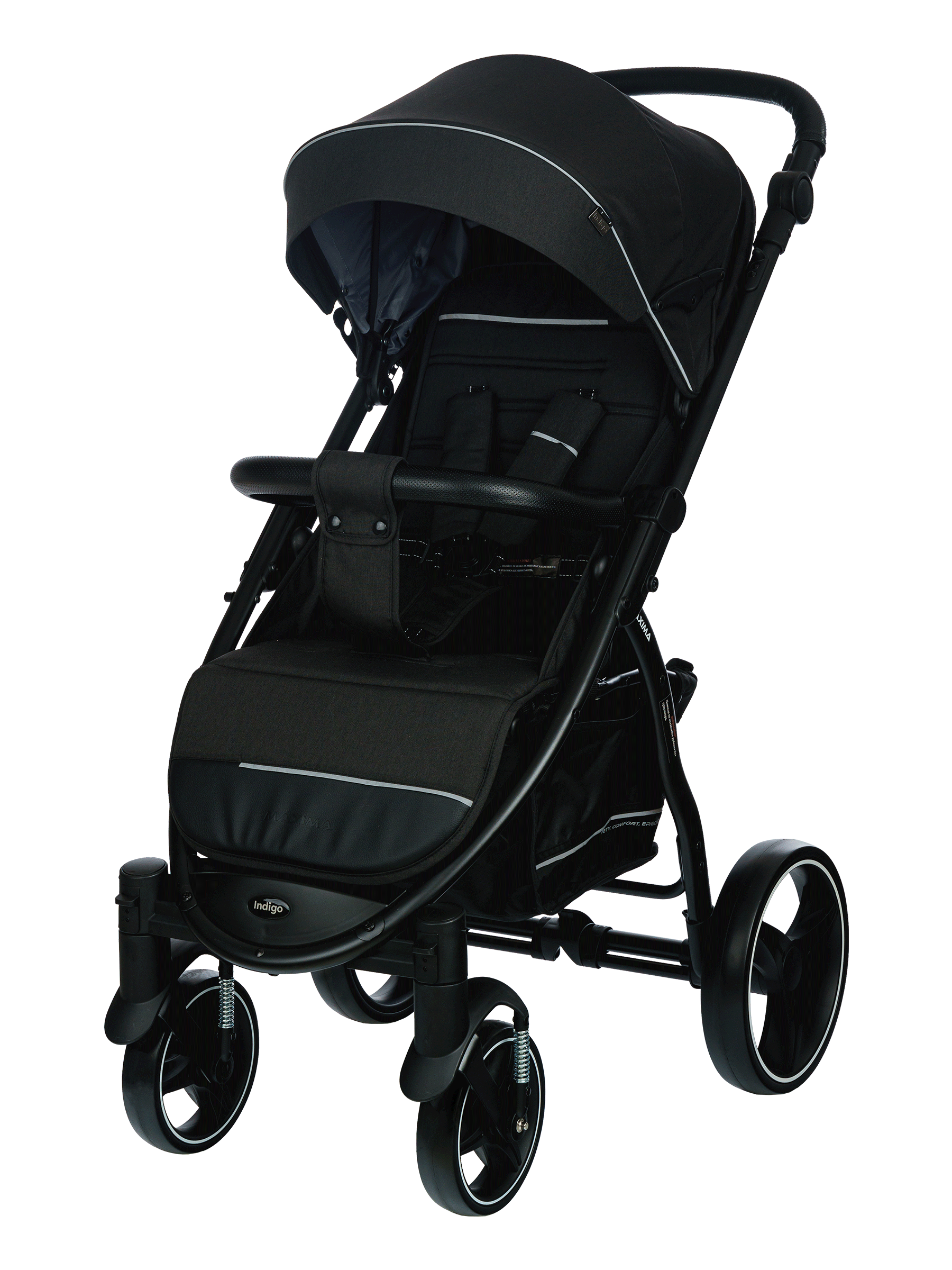 Коляска прогулочная детская MAXIMA (INDIGO), съемный бампер, цвет черный