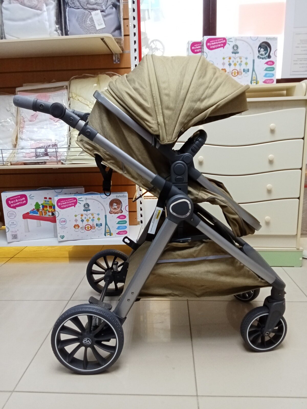 | Особенности шасси | корзина для покупок / перестановка блока лицом/спиной / регулировка высоты ручки / съемные колеса |