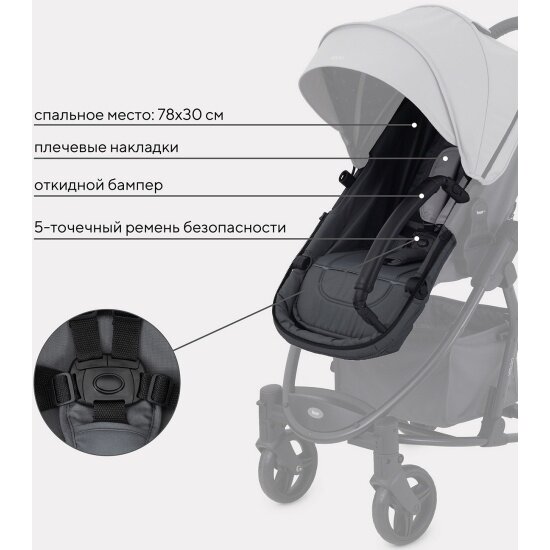 | Особенности | бампер, мягкие накладки на ремни, регулировка наклона спинки, ремни безопасности, смотровое окно |
