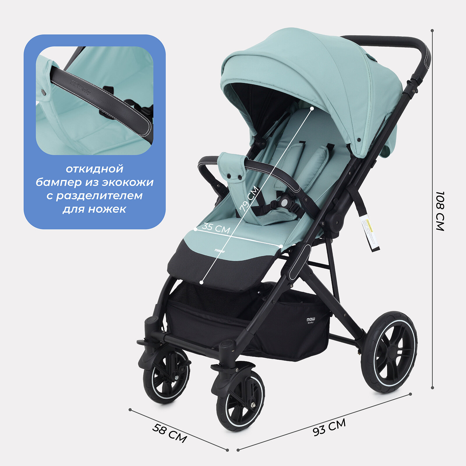 Коляска прогулочная всесезонная MOWBaby "TURBO 2.0" MB021 Mint интересное: