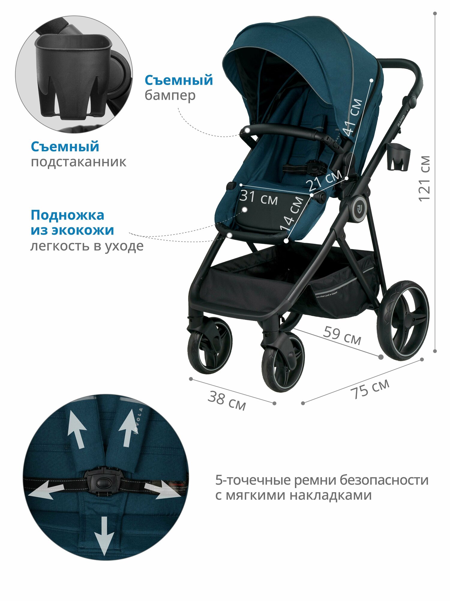 СохранитьКоляска-трансформер Jovola Rapid универсальная 2 в 1, всесезонная, морская волна интересное: