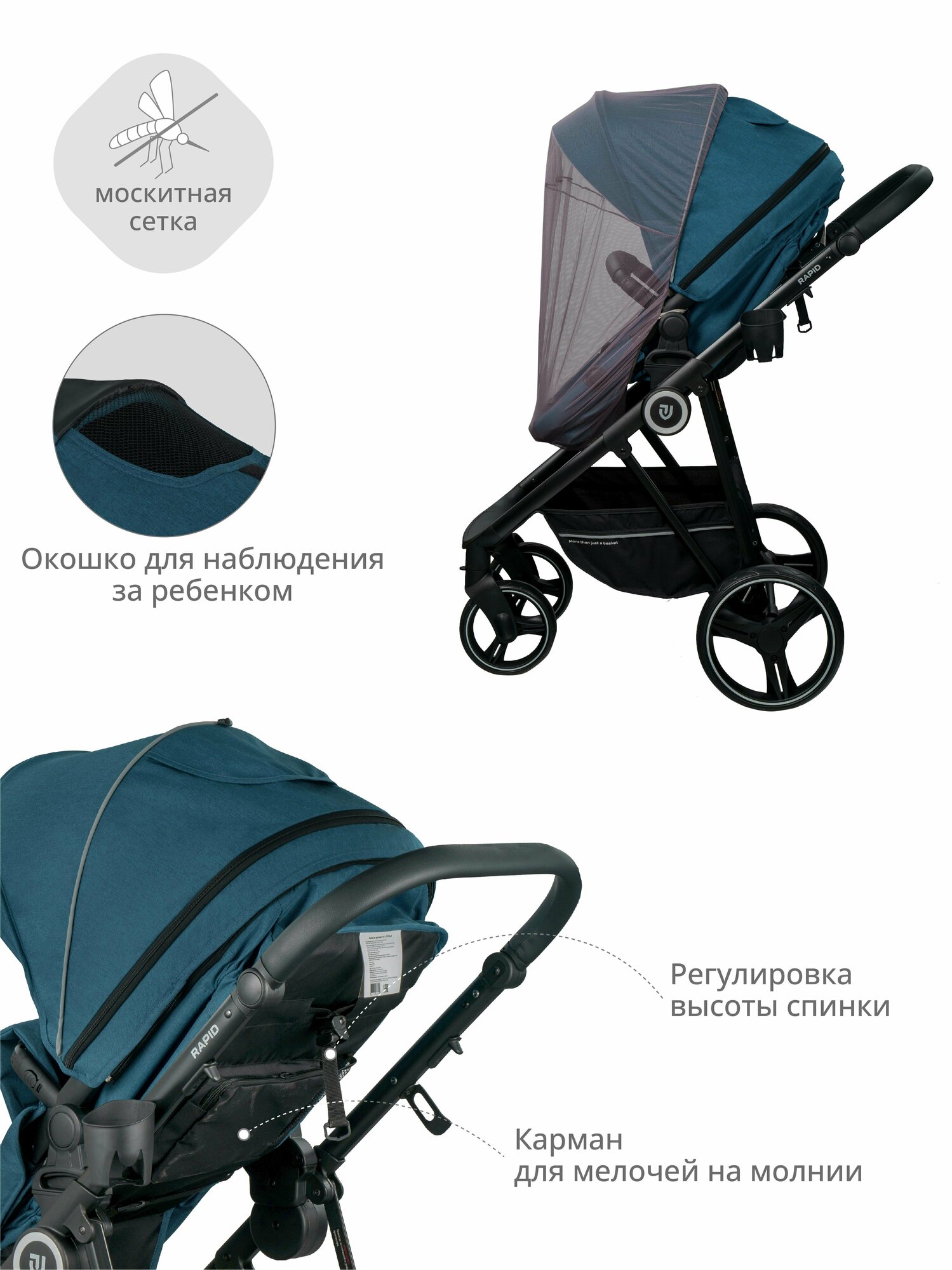 | Аксессуары в комплекте | антимоскитная сетка, бампер, держатель для бутылочки, капюшон, накидка на ноги, подстаканник, солнцезащитный козырек |