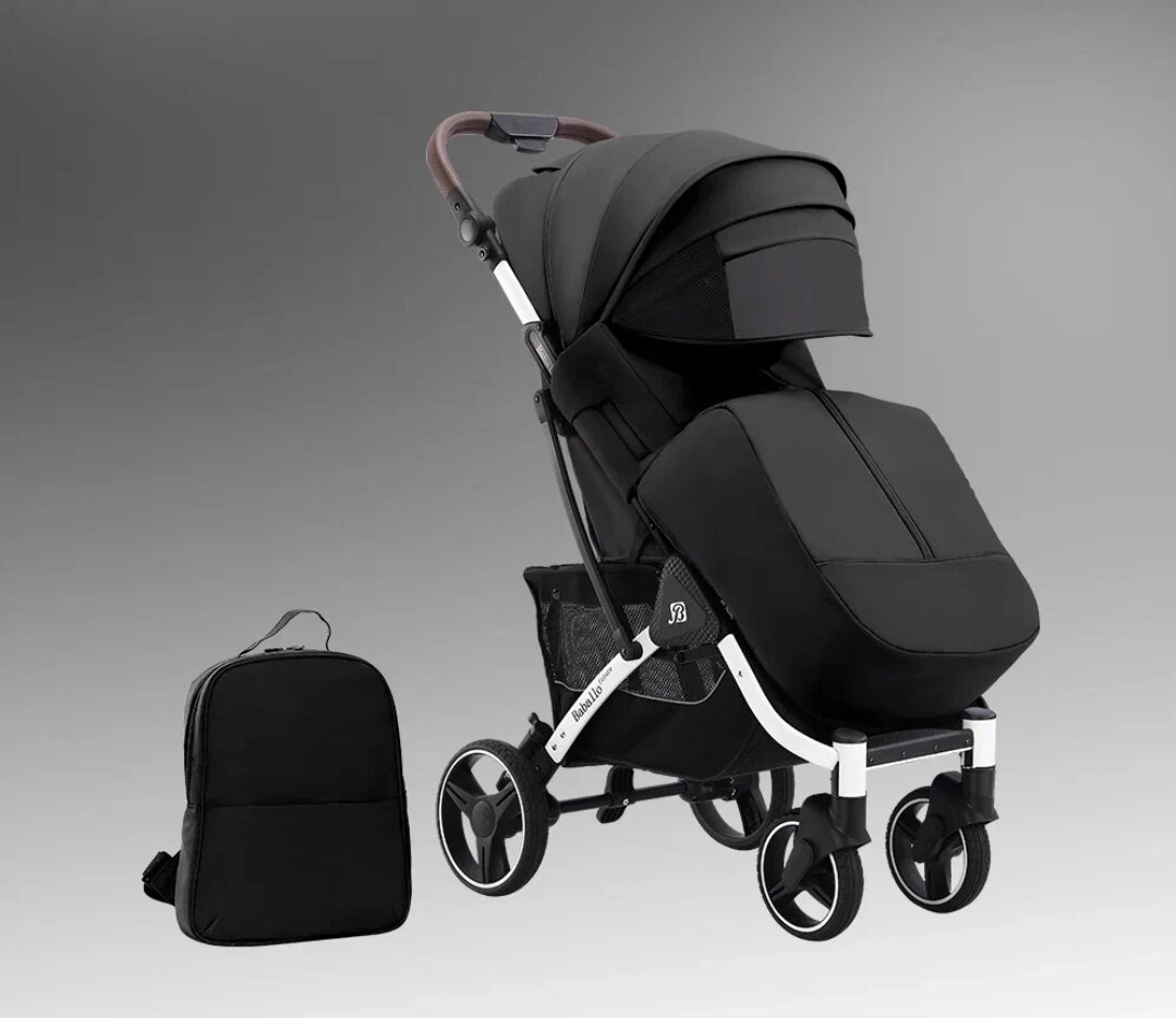 Детская прогулочная коляска Babalo future 2024 NEW Черная, Рама белая, механическая спинка, сумка в комплекте