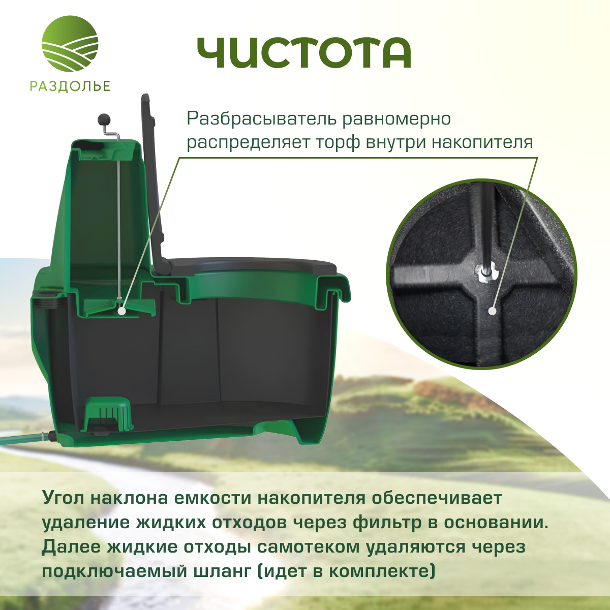 Туалет торфяной Раздолье зелёный интересное: