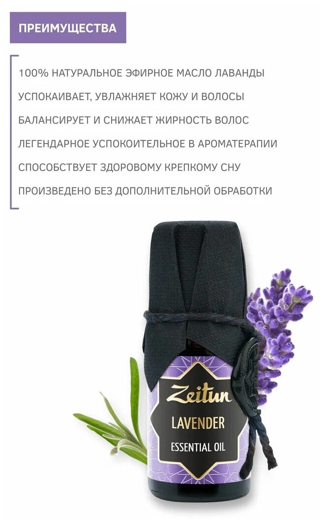 ZEITUN Эфирное масло "Лаванда". Масло для волос, для лица и тела, ароматерапия, аромамасло для бани и дома, для аромалампы, 10 мл интересное: