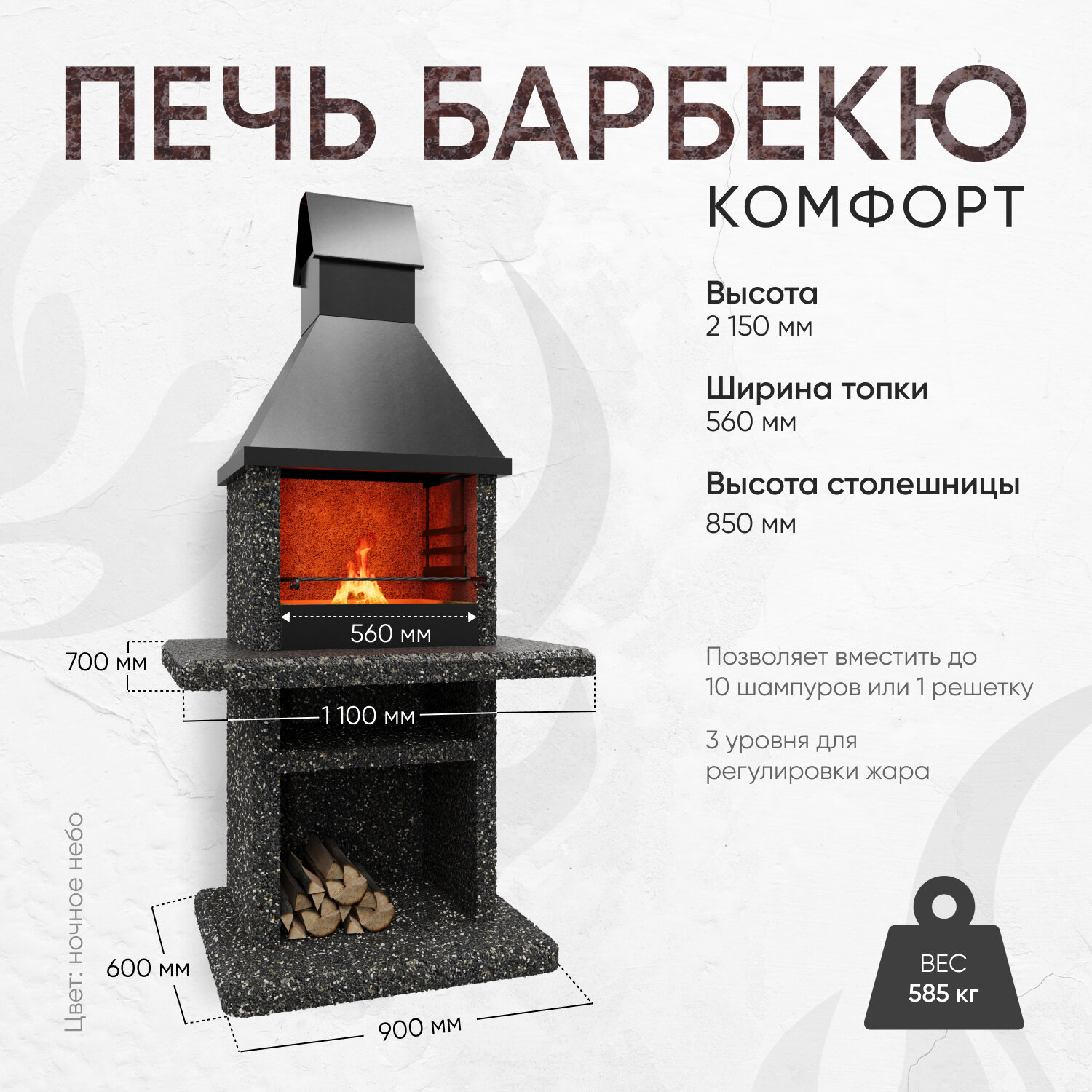 СохранитьПечь-барбекю Комфорт, с мангалом 56 см, фактура Ночное небо интересное: