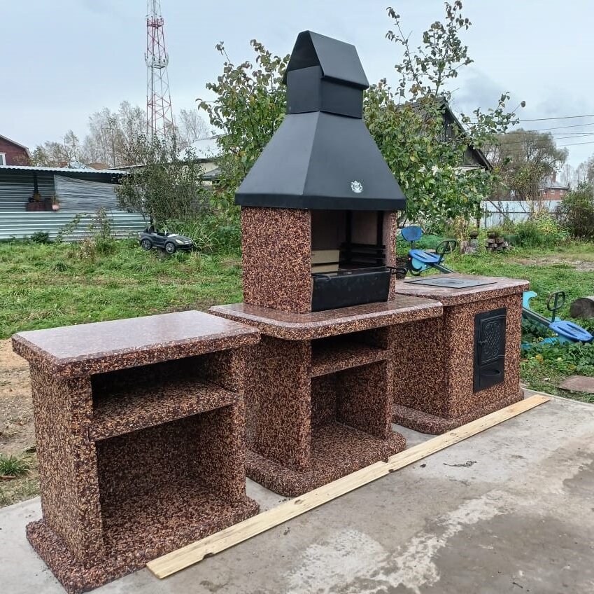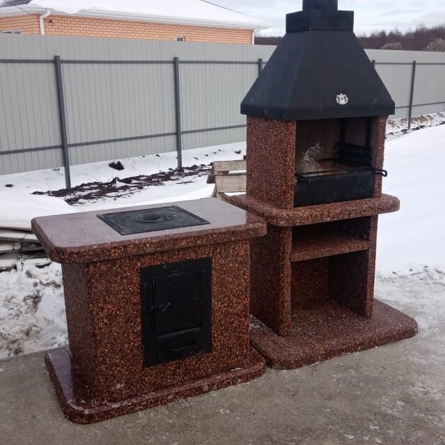 Печь-барбекю Комфорт, с мангалом 56 см, фактура Марс