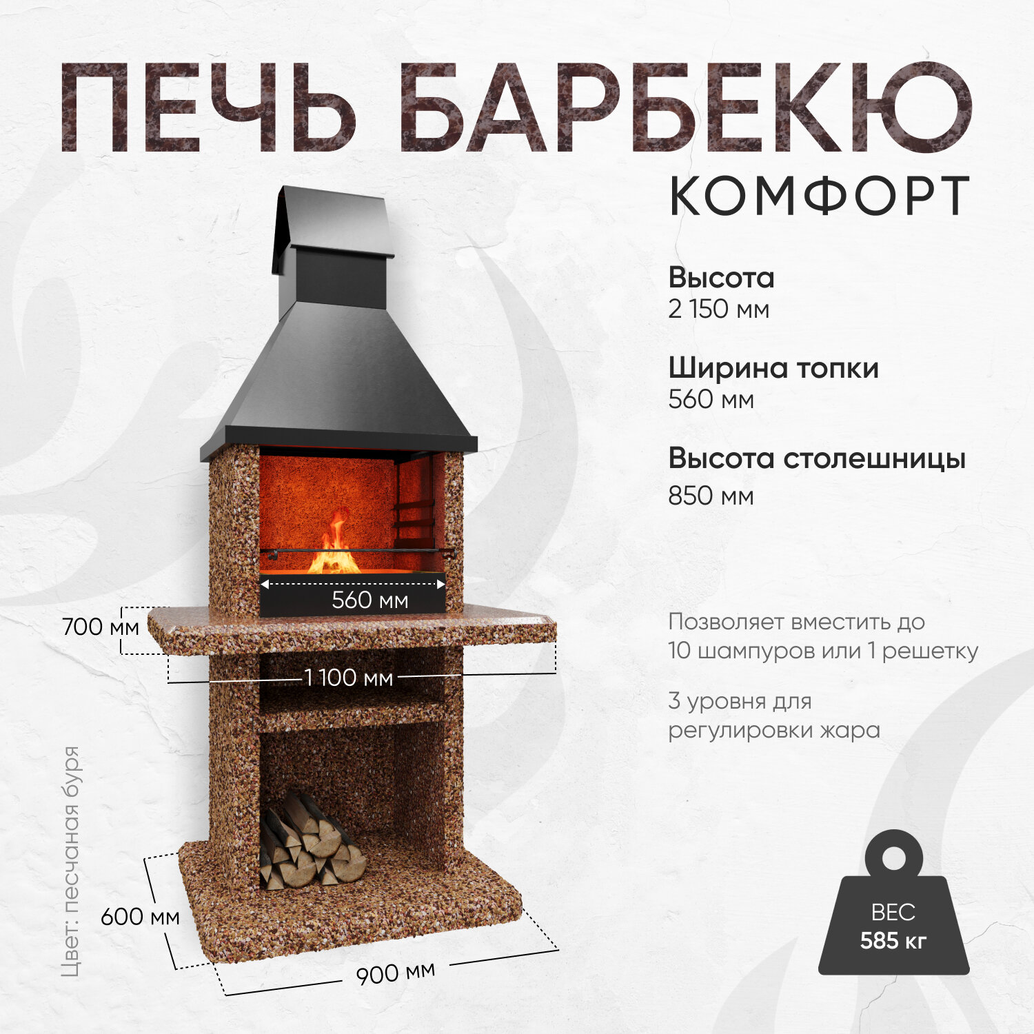 Ниже Вы можете прочитать отзывы на Печь-барбекю Комфорт, с мангалом 56 см, фактура Песчаная буря, ознакомится с подробными характеристиками, посмотреть интересные обзоры и фотографии на Печь-барбекю Комфорт, с мангалом 56 см, фактура Песчаная буря.