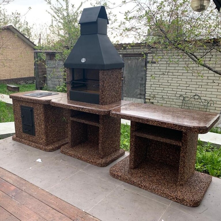 Печь-барбекю Комфорт, с мангалом 56 см, фактура Черное и белое