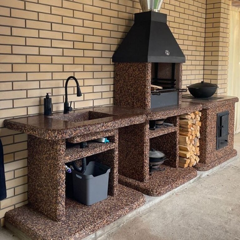 СохранитьПечь-барбекю Комфорт, с мангалом 56 см, фактура Песчаная буря интересное:
